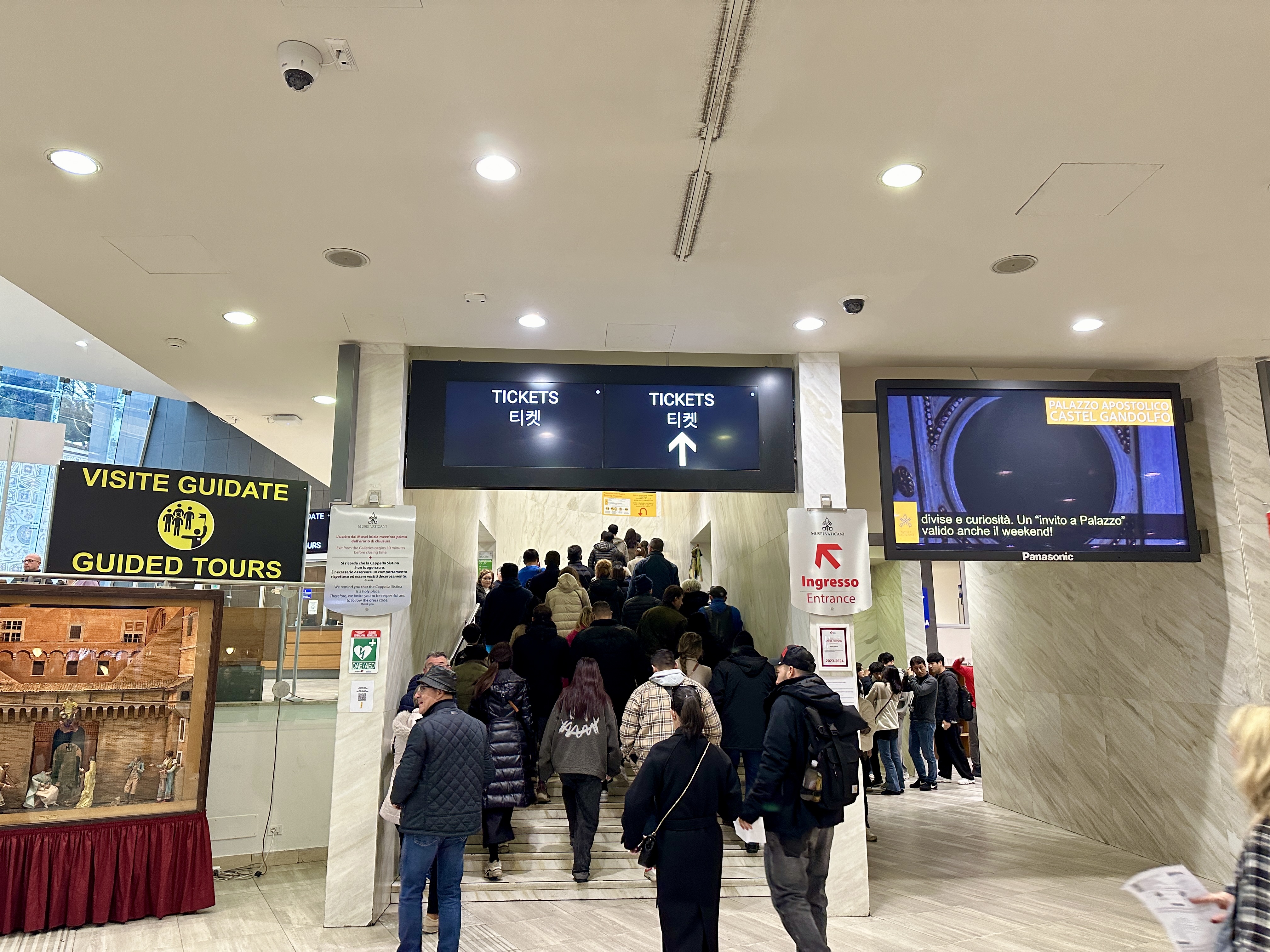 일찍 가서 대기하며 바티칸 박물관 입장전에 미켈란젤로의 프레스코화 설명을 충분히 듣게 됩니다.