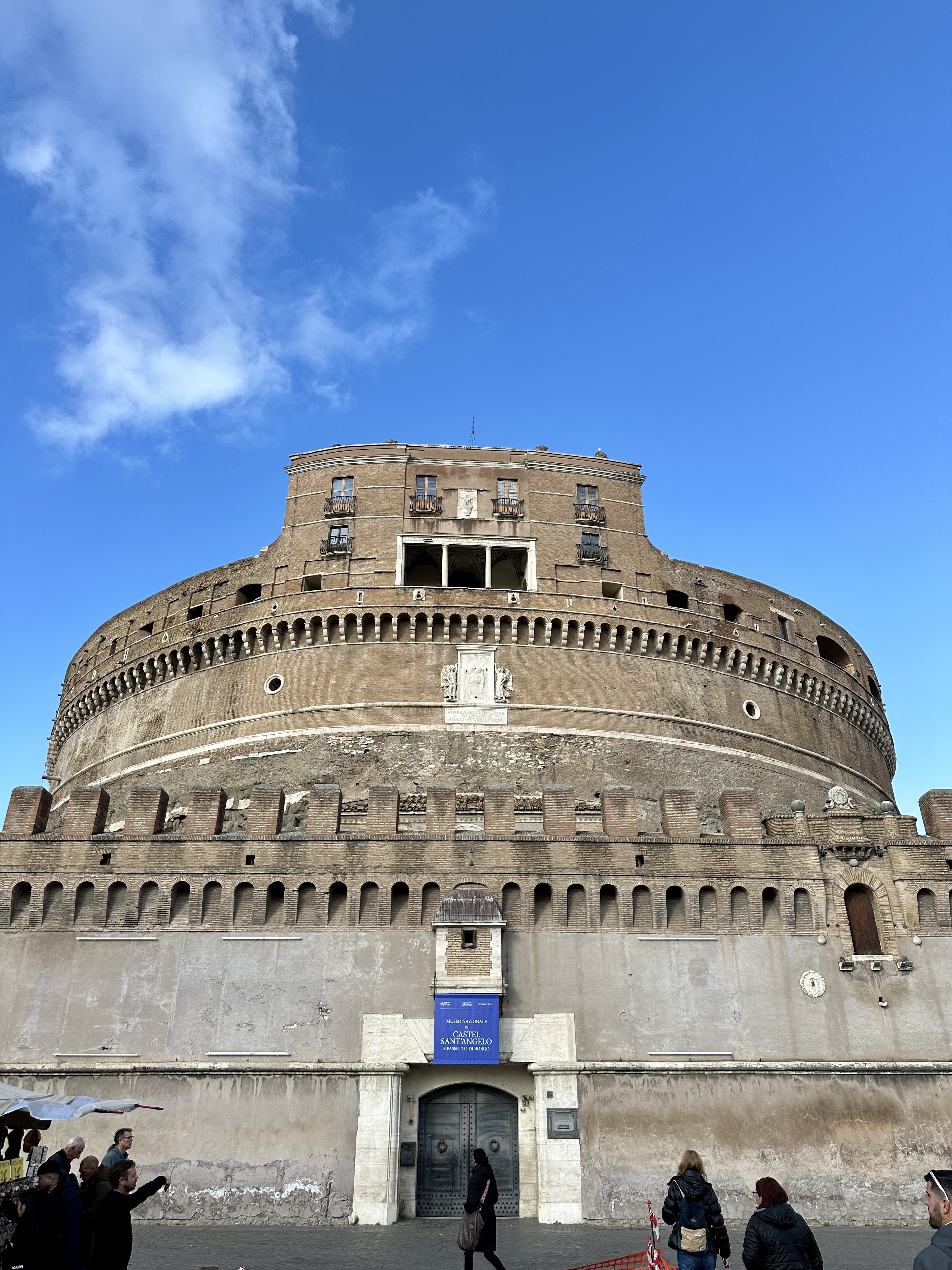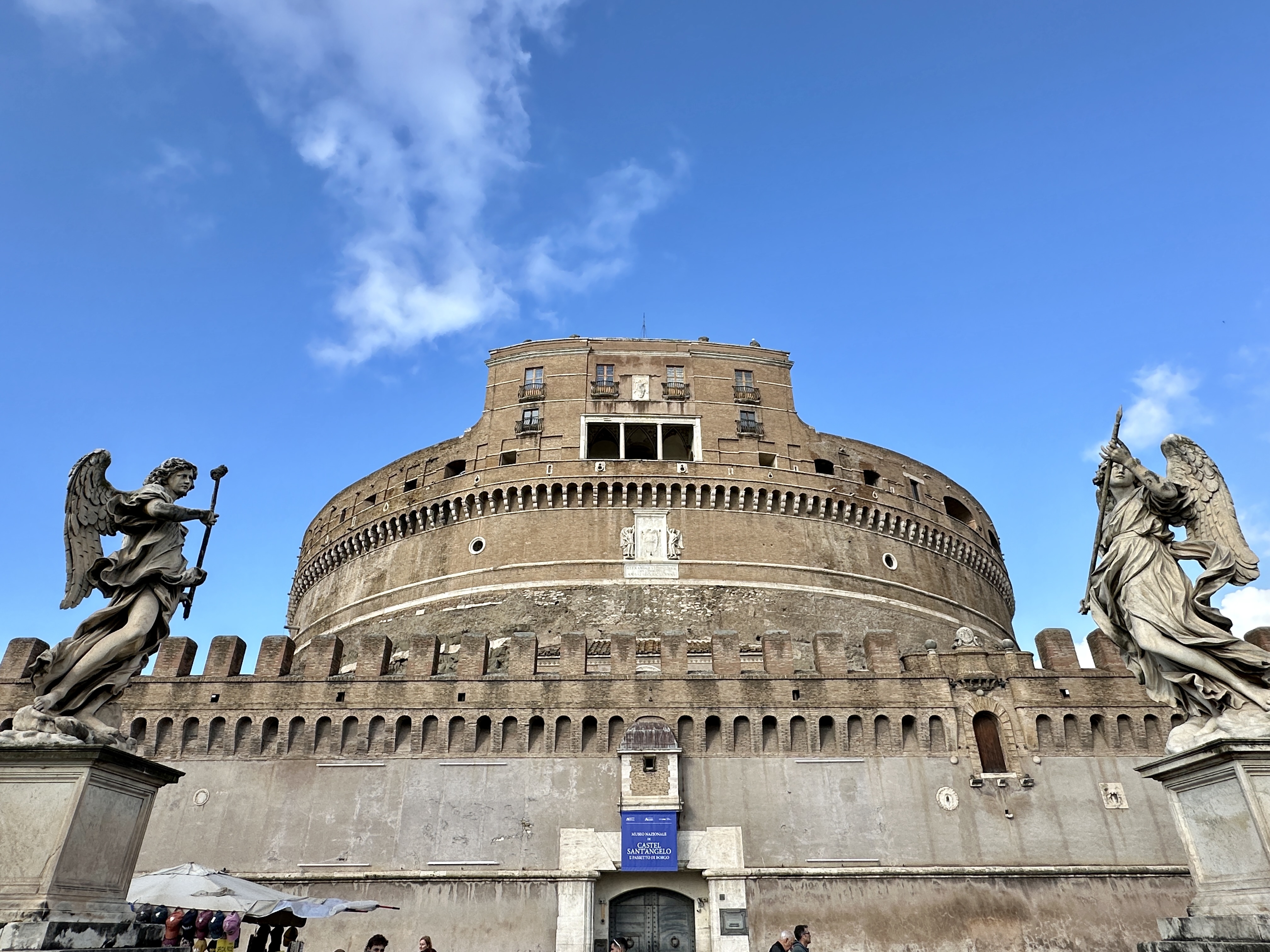 천사의 성이라고도 불리는 성천사성은 2세기 경에 하드리아누스 황제의 묘로 사용하기 위해 건축했다 이후 아우렐리우스 황제 때 요새로 개조된 성입니다. 유사시에는 교황의 피난처로 사용하기도 했고, 감옥으로도 이용했으며 지금은 산탄젤로 성 국립박물관으로 이용하고 있습니다. 또한 푸치니의 오페라 토스카 3막의 배경이기도 합니다.