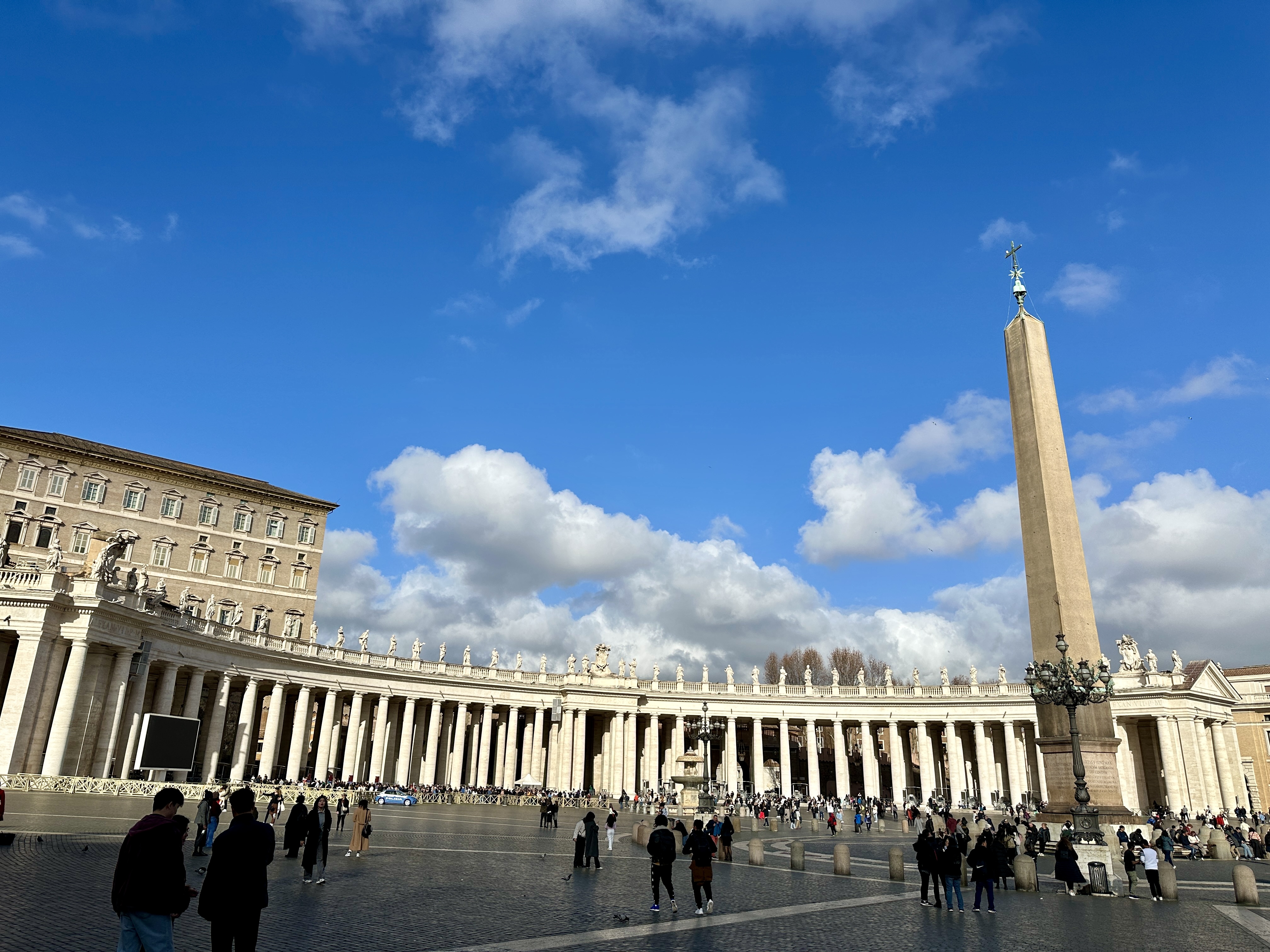 성 베드로 광장은 기하학적인 구조가 인상적이고 성당 앞에 오벨리스크가 있는 독특한 광장입니다.