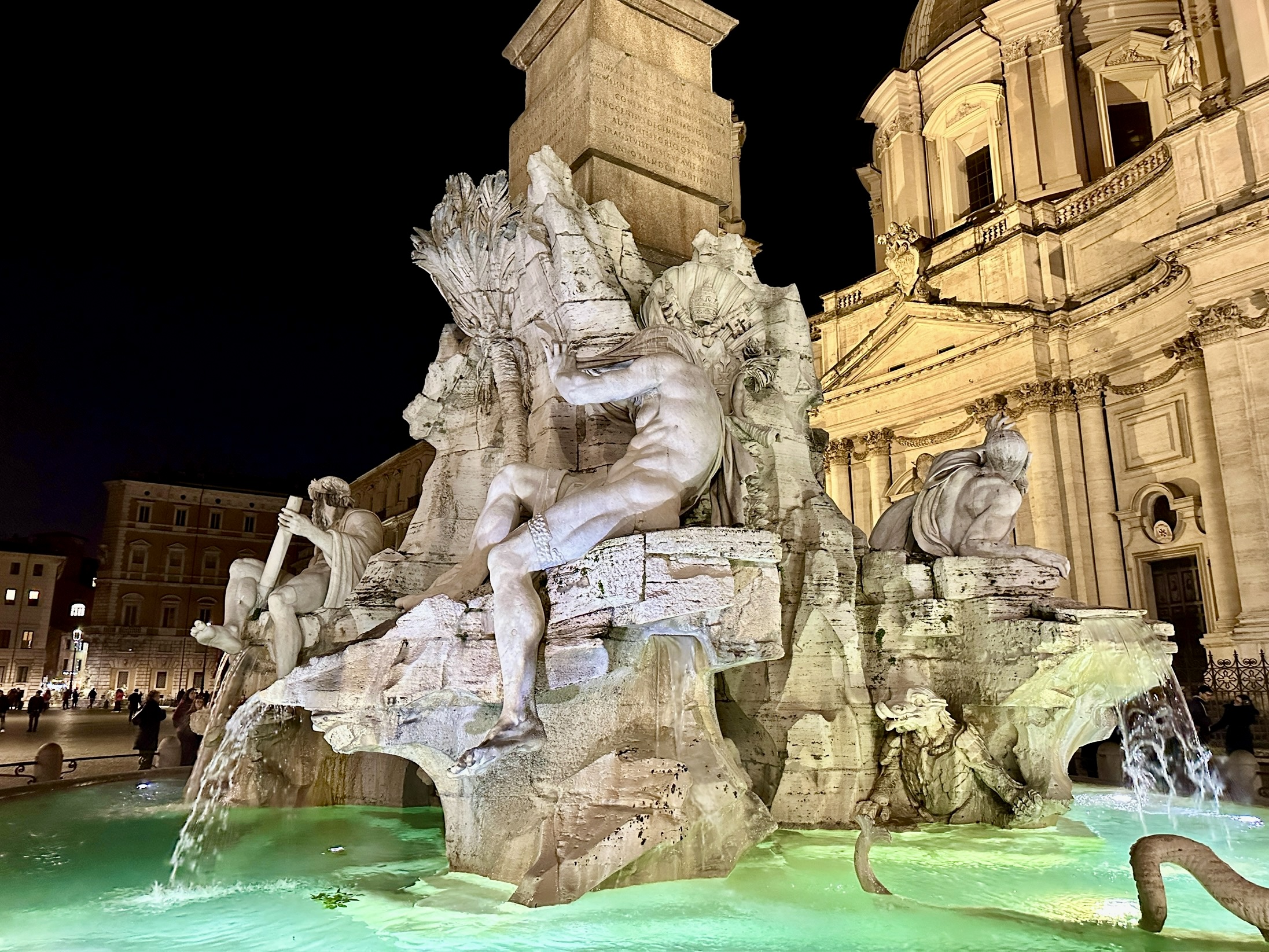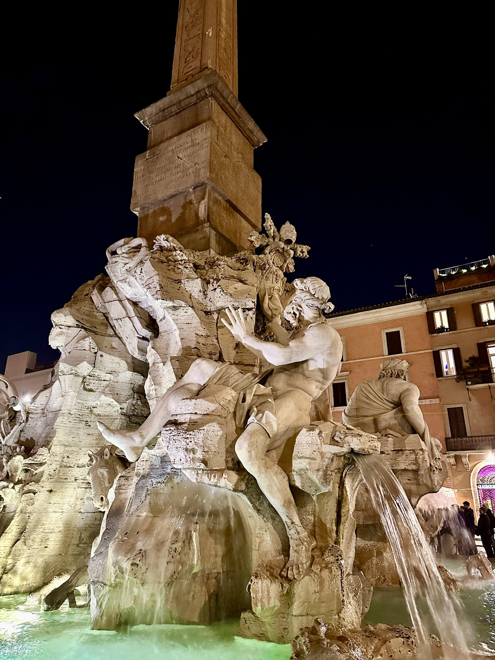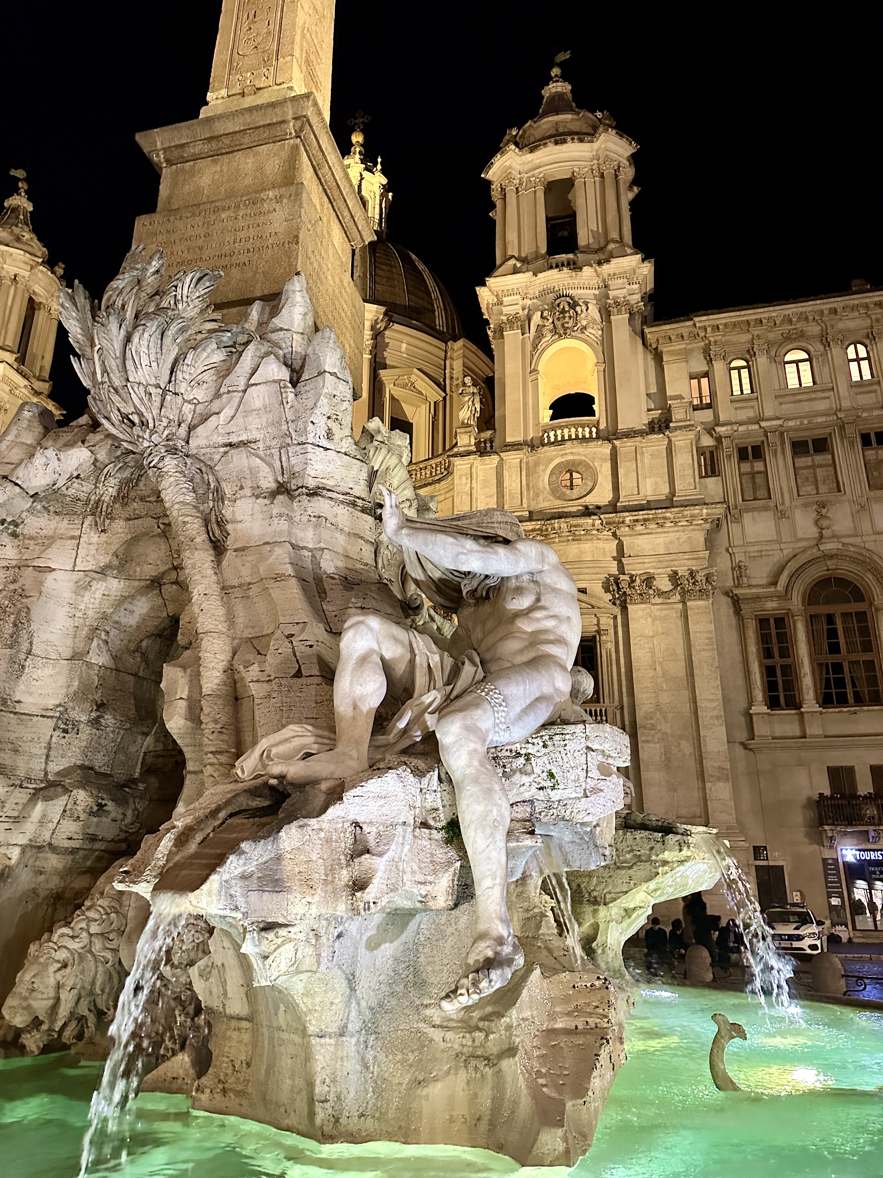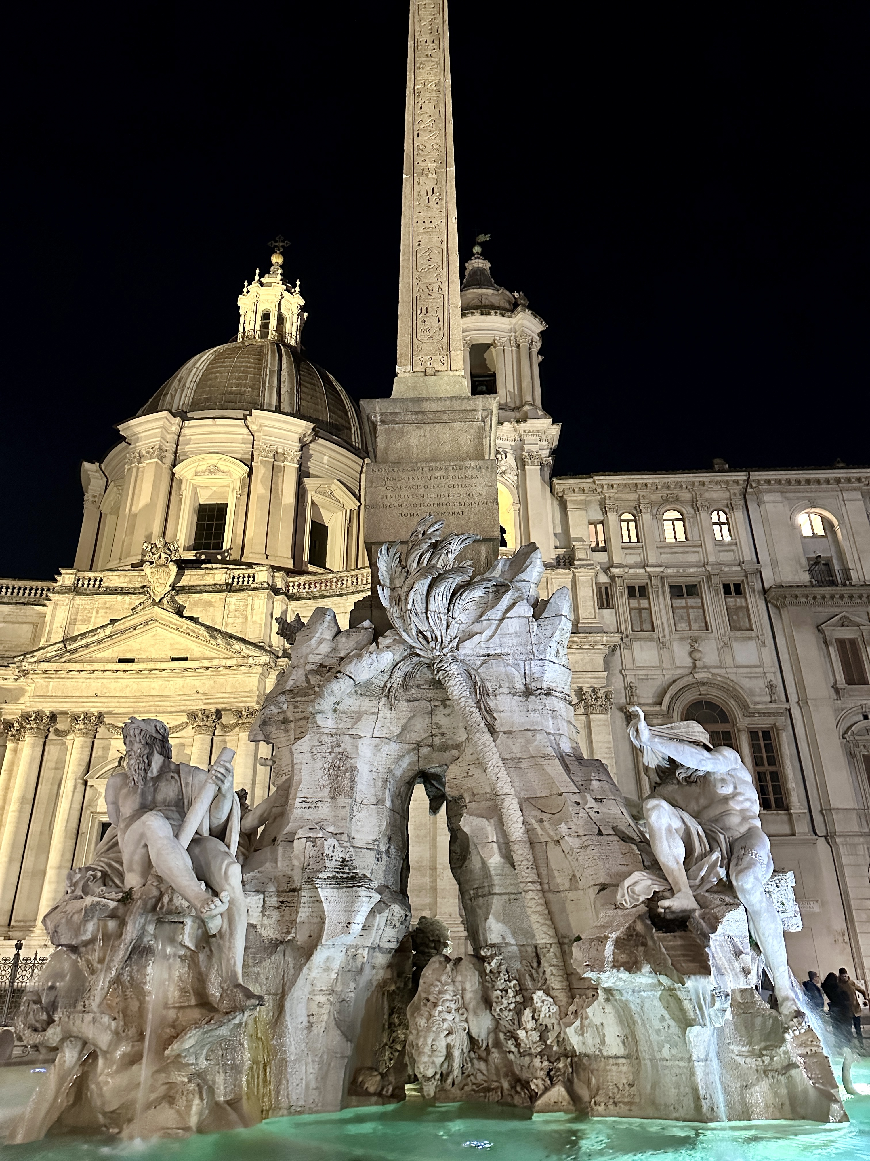 나보나 광장 4개강의 분수는 아프리카의 나일강, 인도의 갠지스강, 남미의 라 플라타 강, 유럽의 도나우 강을 각각 네명의 신의 모습으로 형상화한 분수입니다.