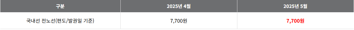 - 발권 적용일 : 2025년 5월 1일 ~ 2025년 5월 31일 (발권일 기준)