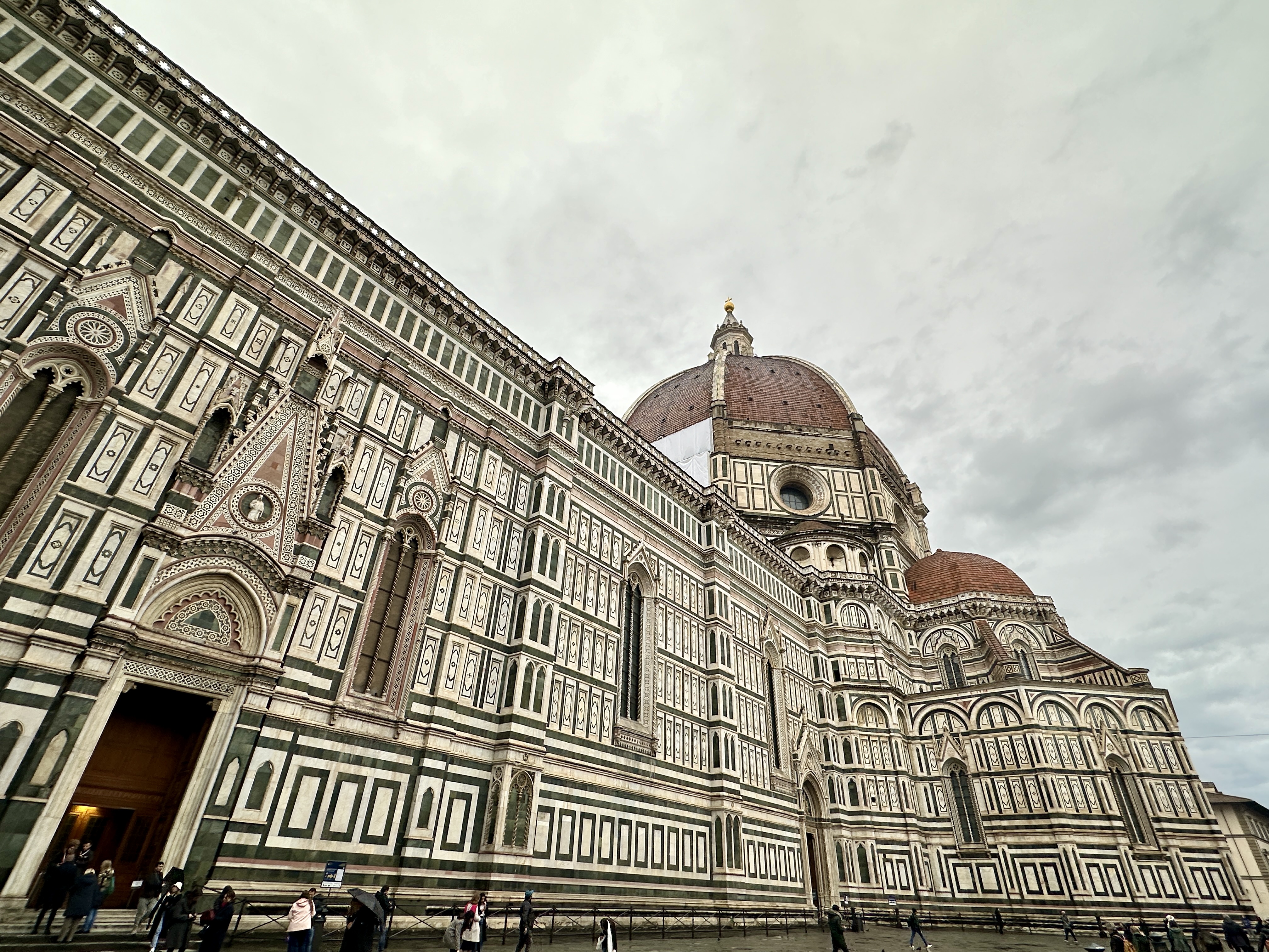 붉은색 돔과 흰색 대리석 외관이 인상적인 이 성당은 브루넬레스키의 천재성이 집약된 건축물로, 외부 장식만으로도 압도적인 아름다움을 자랑합니다.