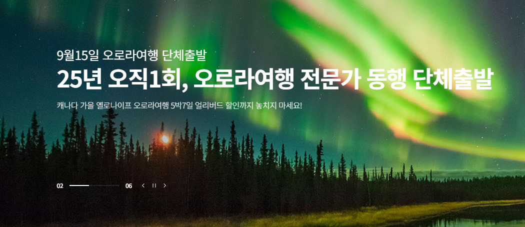가을 오로라부터 비아레일 기차여행, 맞춤형 자유여행까지… 캐나다 여행의 모든 것을 헬로캐나다에서 한 번에 만나보시기 바랍니다. 9월 15일 단 한 번 출발하는 전문가 동행 오로라 투어, 지금 예약하지 않으면 놓칠 수 있어요!
