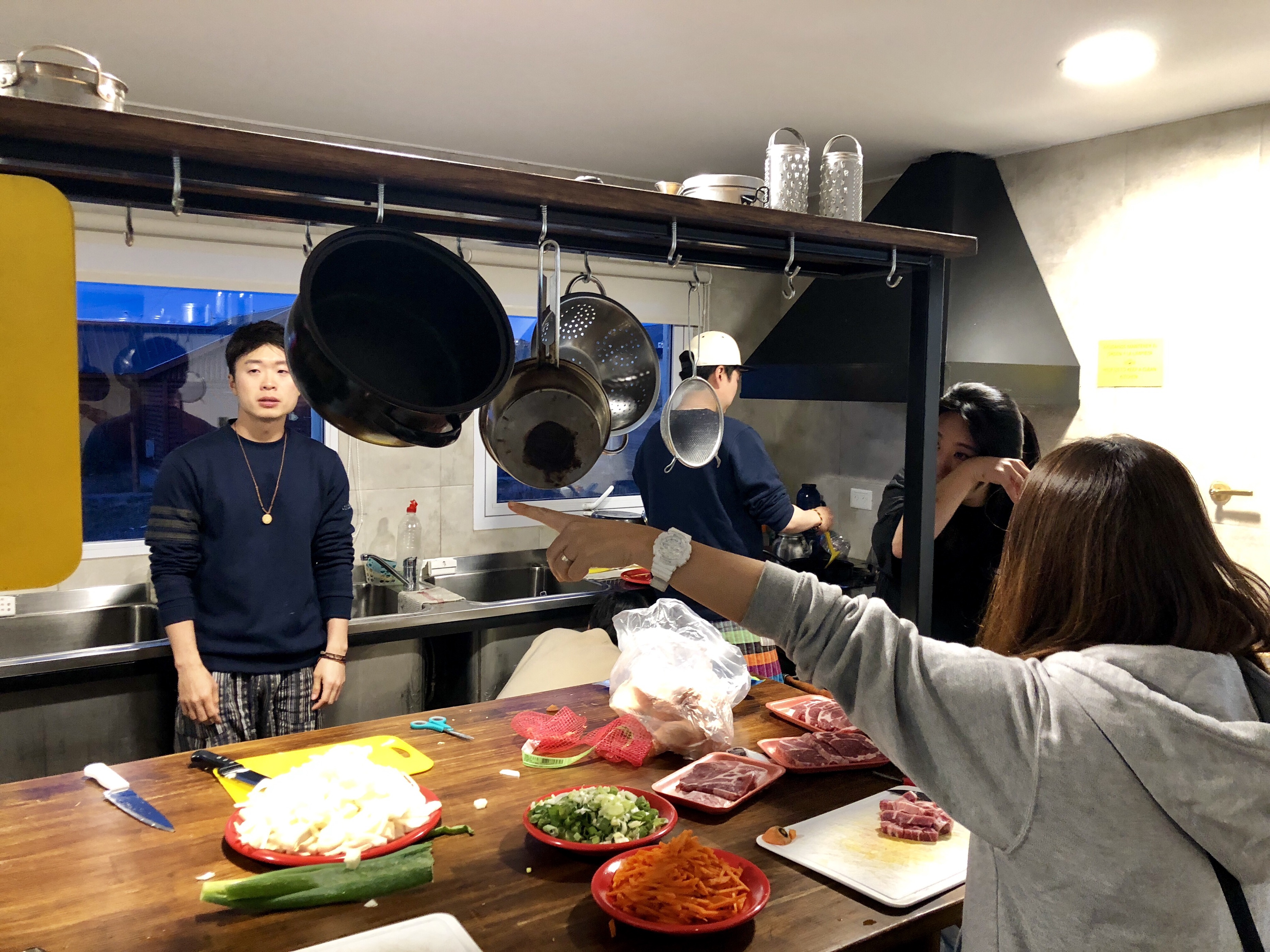 주방 전체를 다 쓰고 있으니 신기했는지 호스텔 스태프가 와서 사진을 찍고
