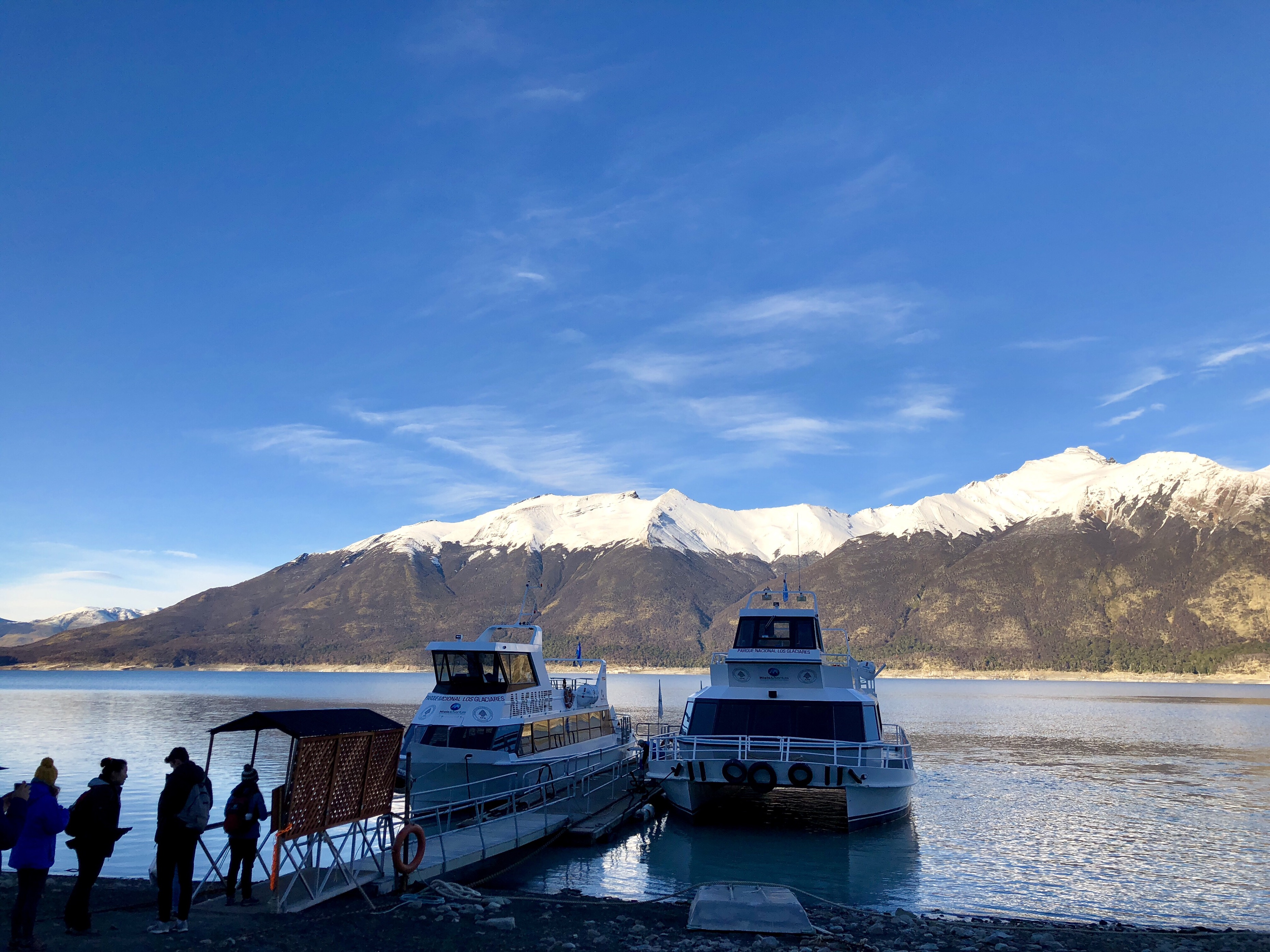 빙하를 가까이서 자세히 보고 빙하 위를 걷기 위해서는 배를 타고 강 건너로 넘어가야 한다.