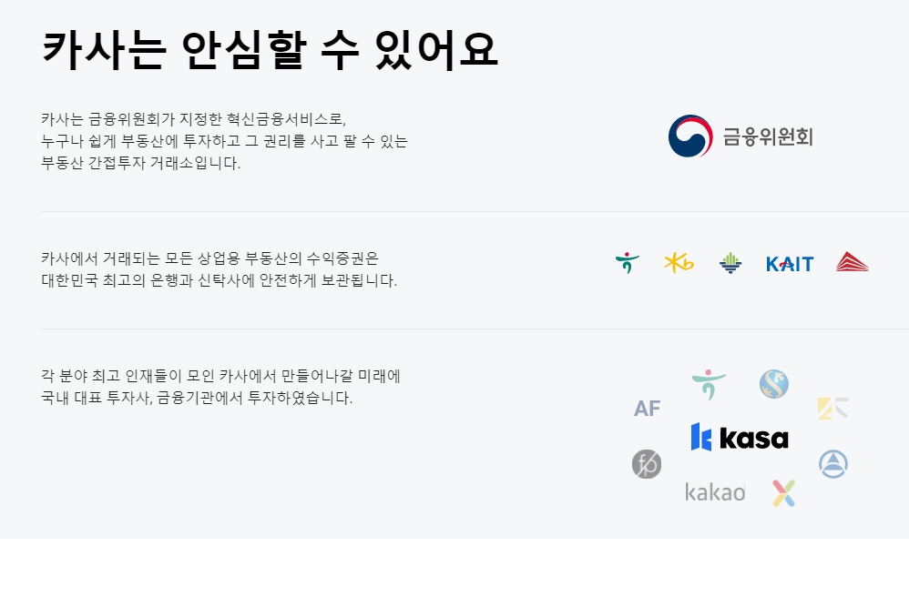 2. 카사에서 거래되는 모든 상업용 부동산의 수익증권은 대한민국 최고의 은행과 신탁사에 안전하게 보관된다.