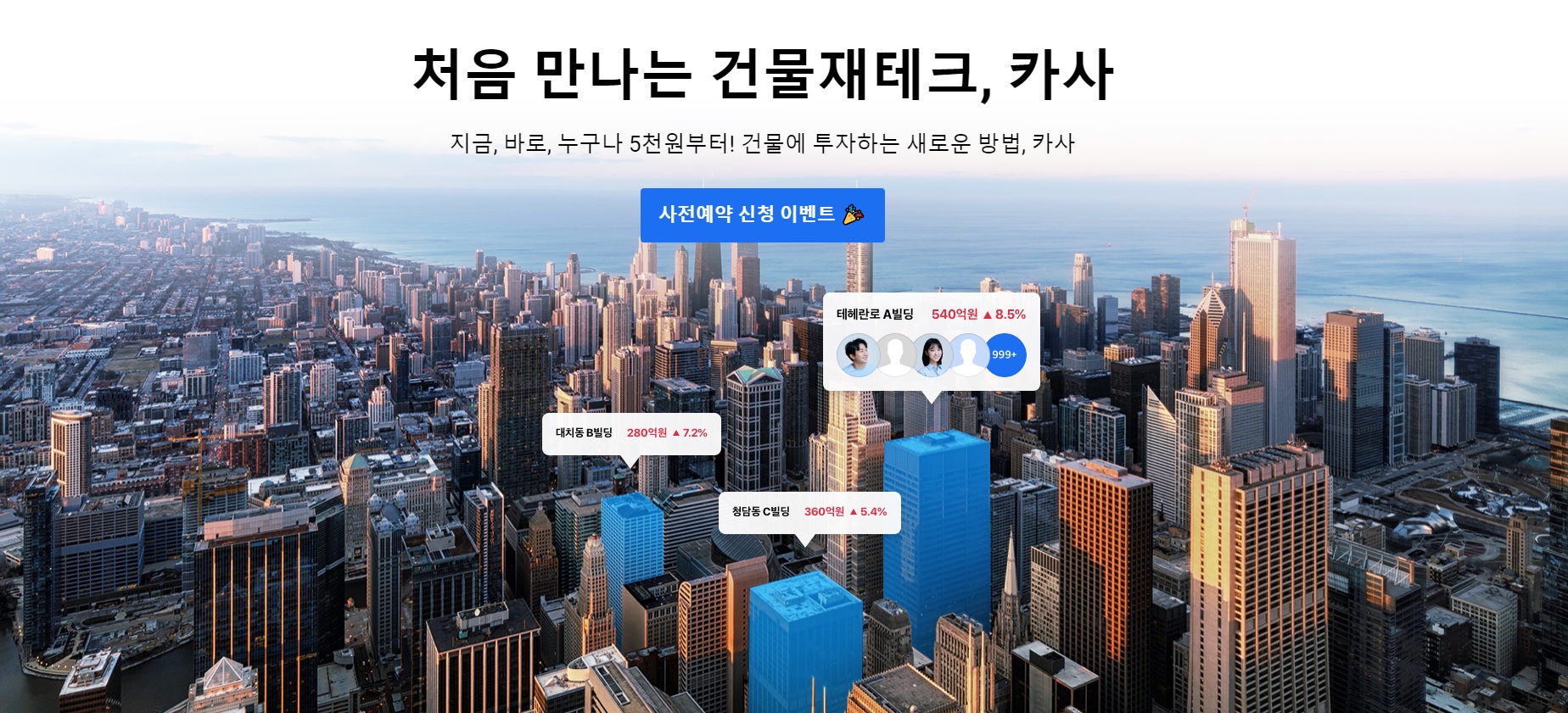 "지금, 바로, 누구나 5천원부터! 건물에 투자하는 새로운 방법, 카사"
