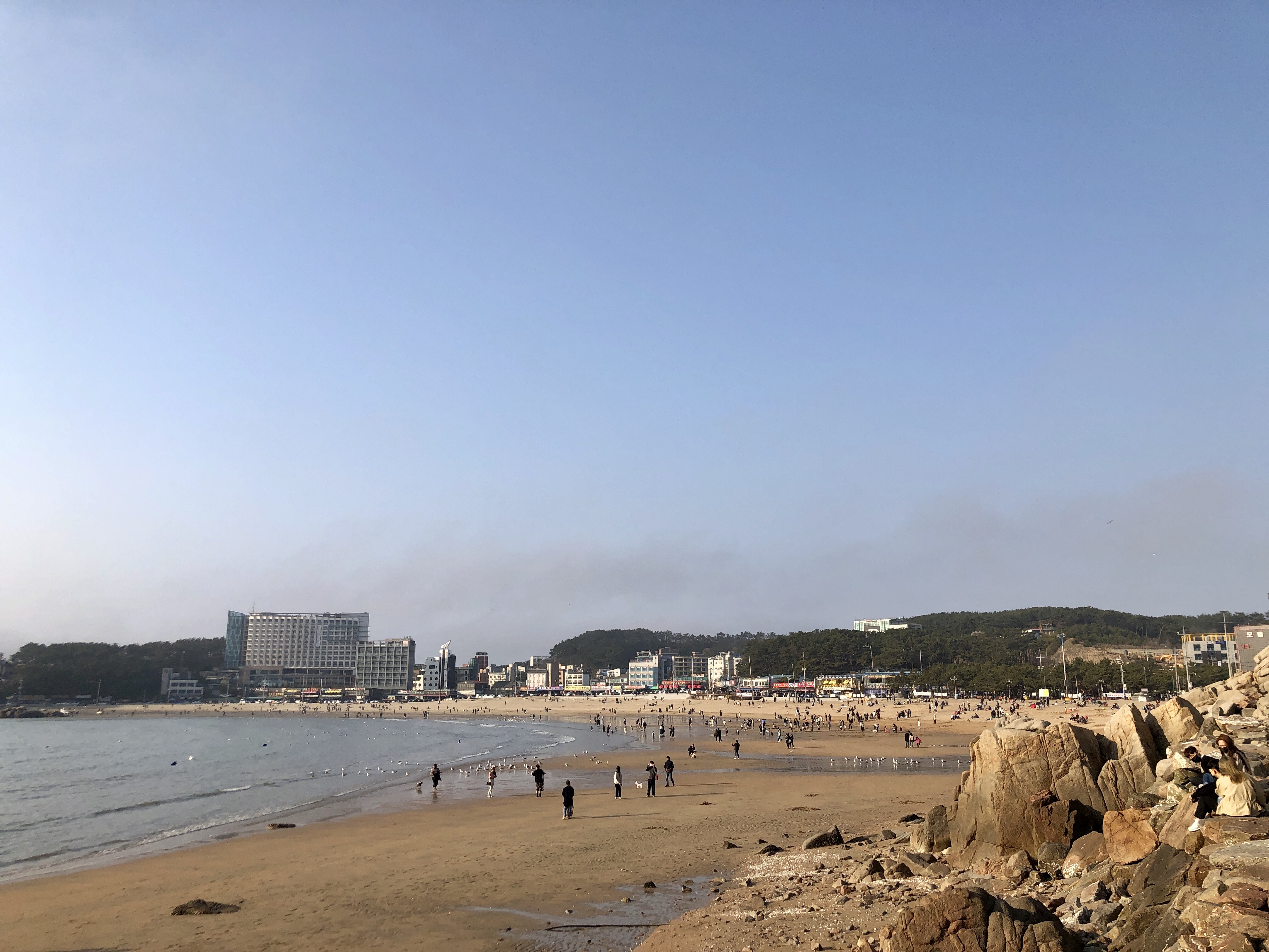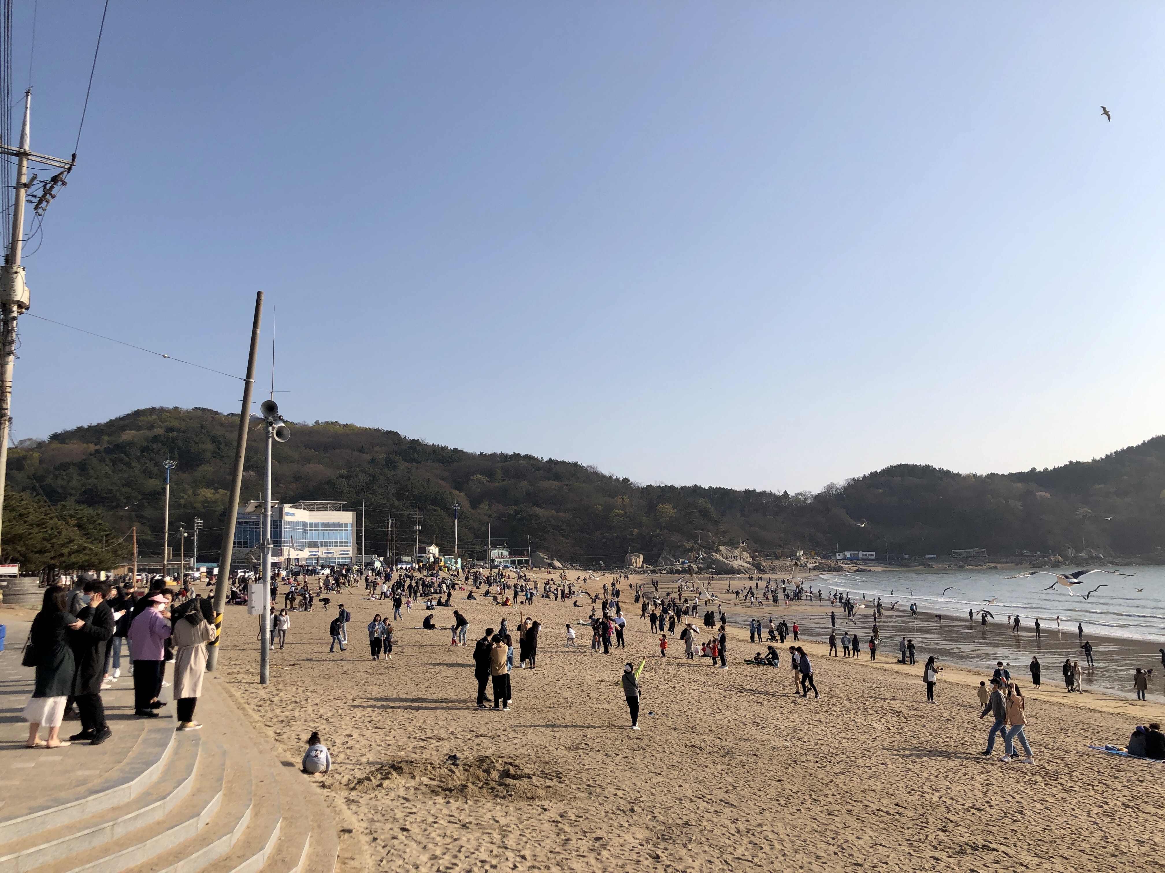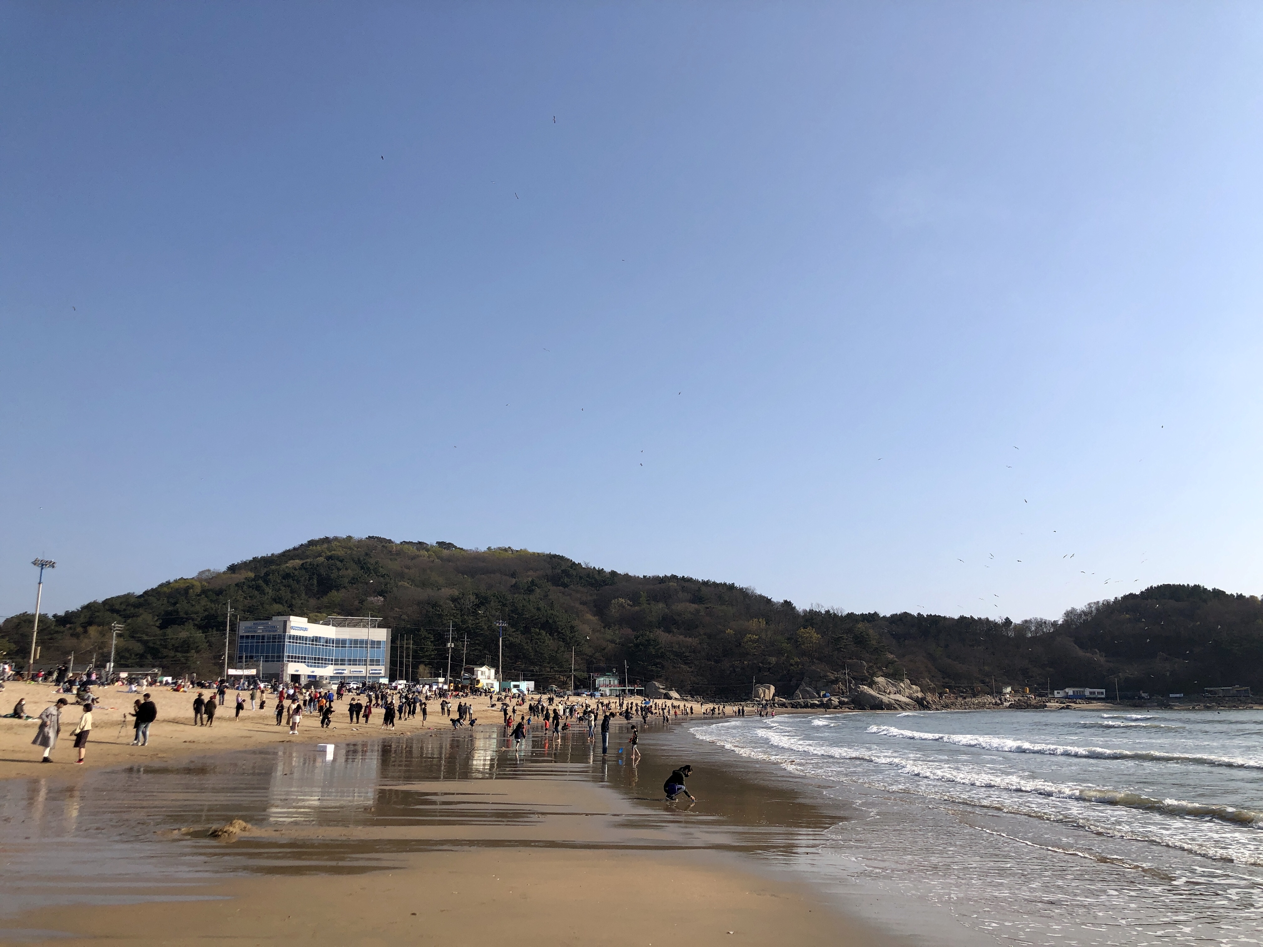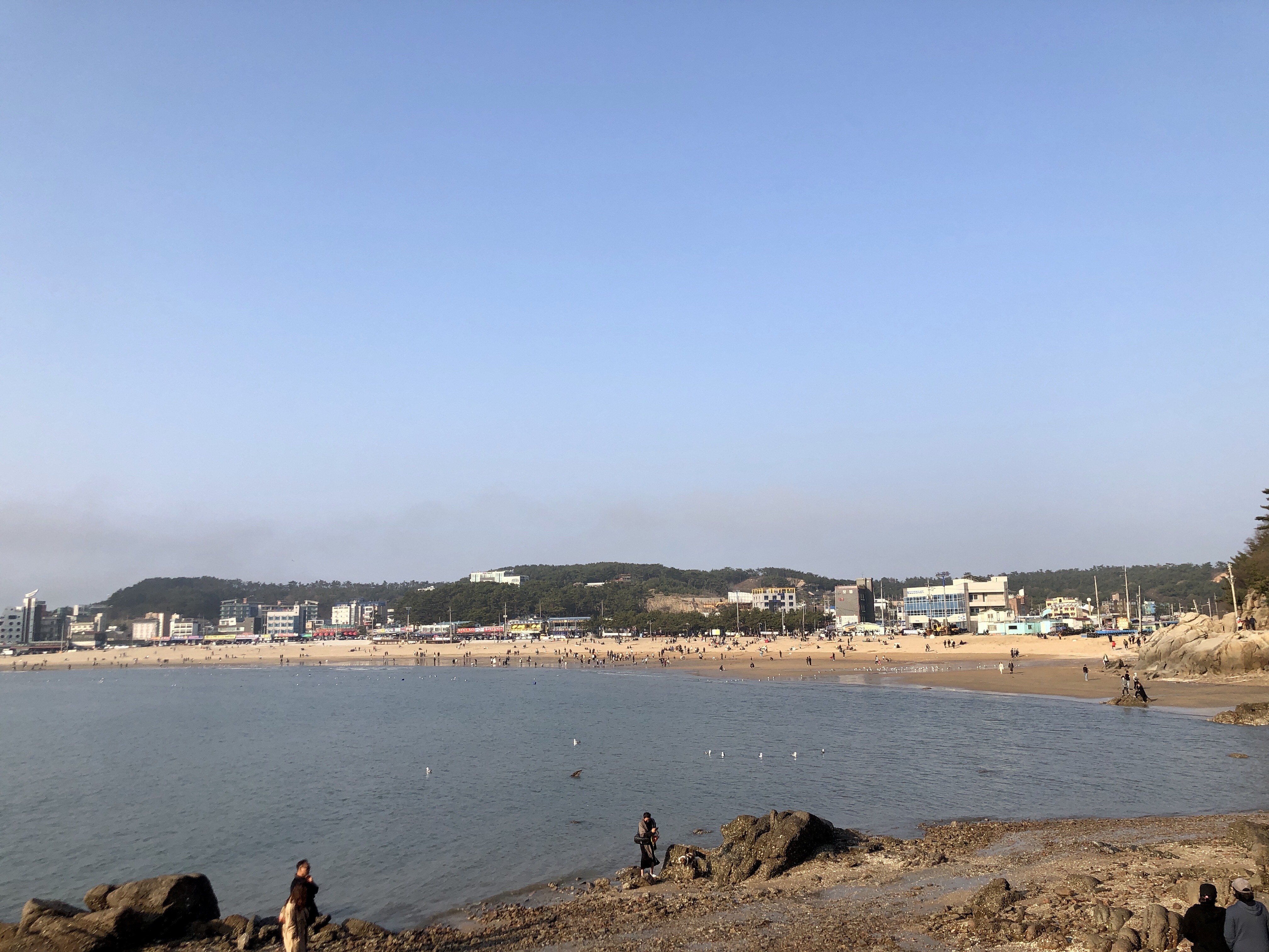 좁은 골목길에 차로 얽힌 입구 도로를 지나서 들어오면 탁 트인 바다와 백사장이 보인다.