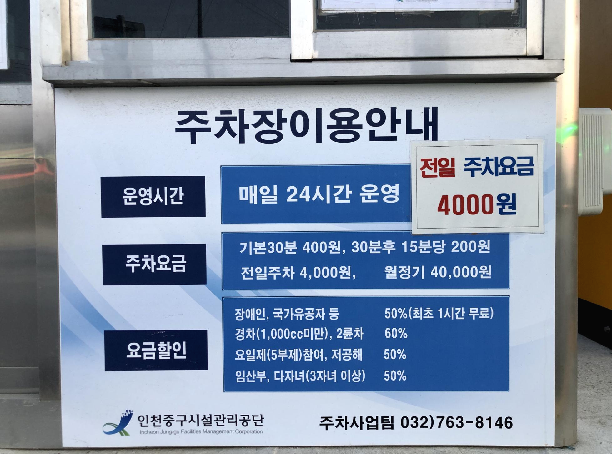 을왕리 공영주차장 주차요금 : 기본 30분 400원, 30분후 15분당 200원, 월정기주차 40,000원