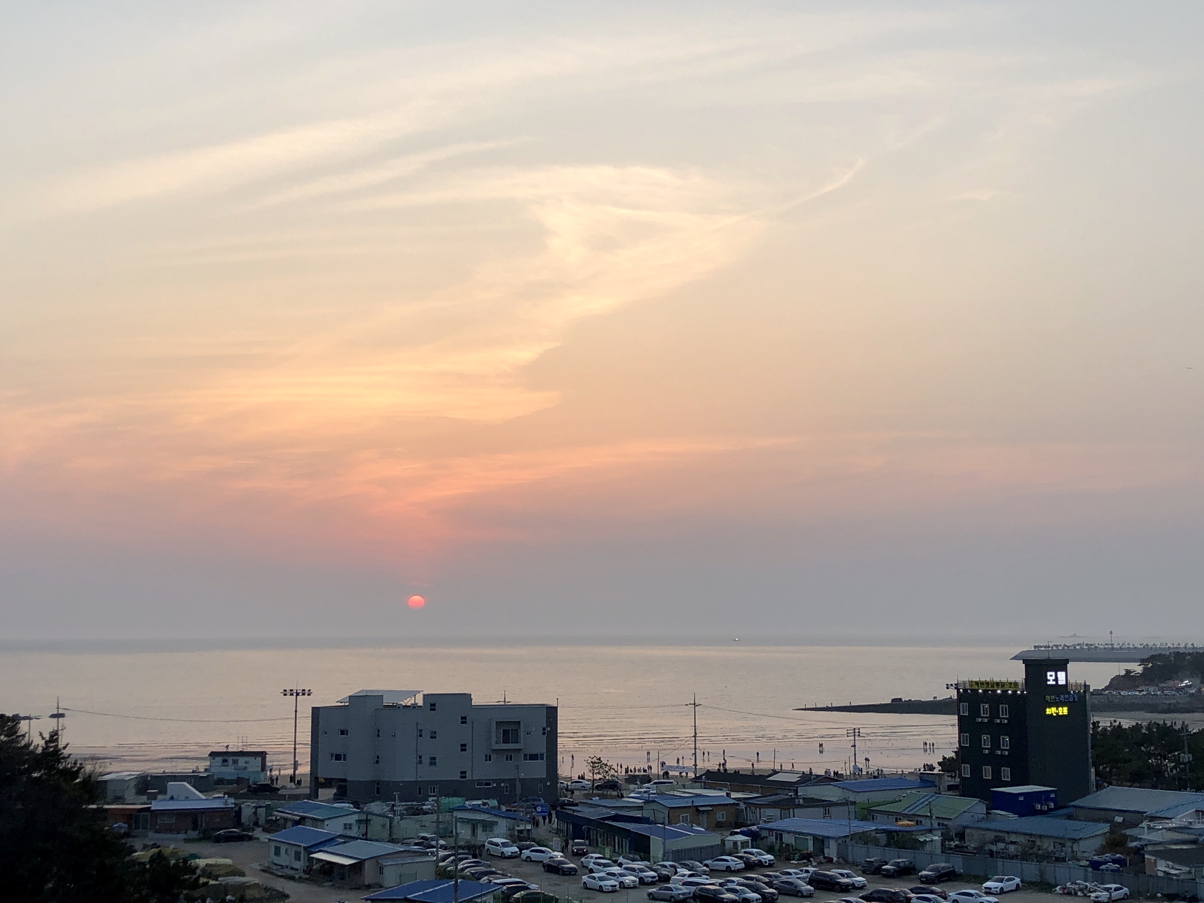 루프탑 카페에서 간식을 먹으며 휴식을 취하다가 서해바다의 일몰을 감상하였다.