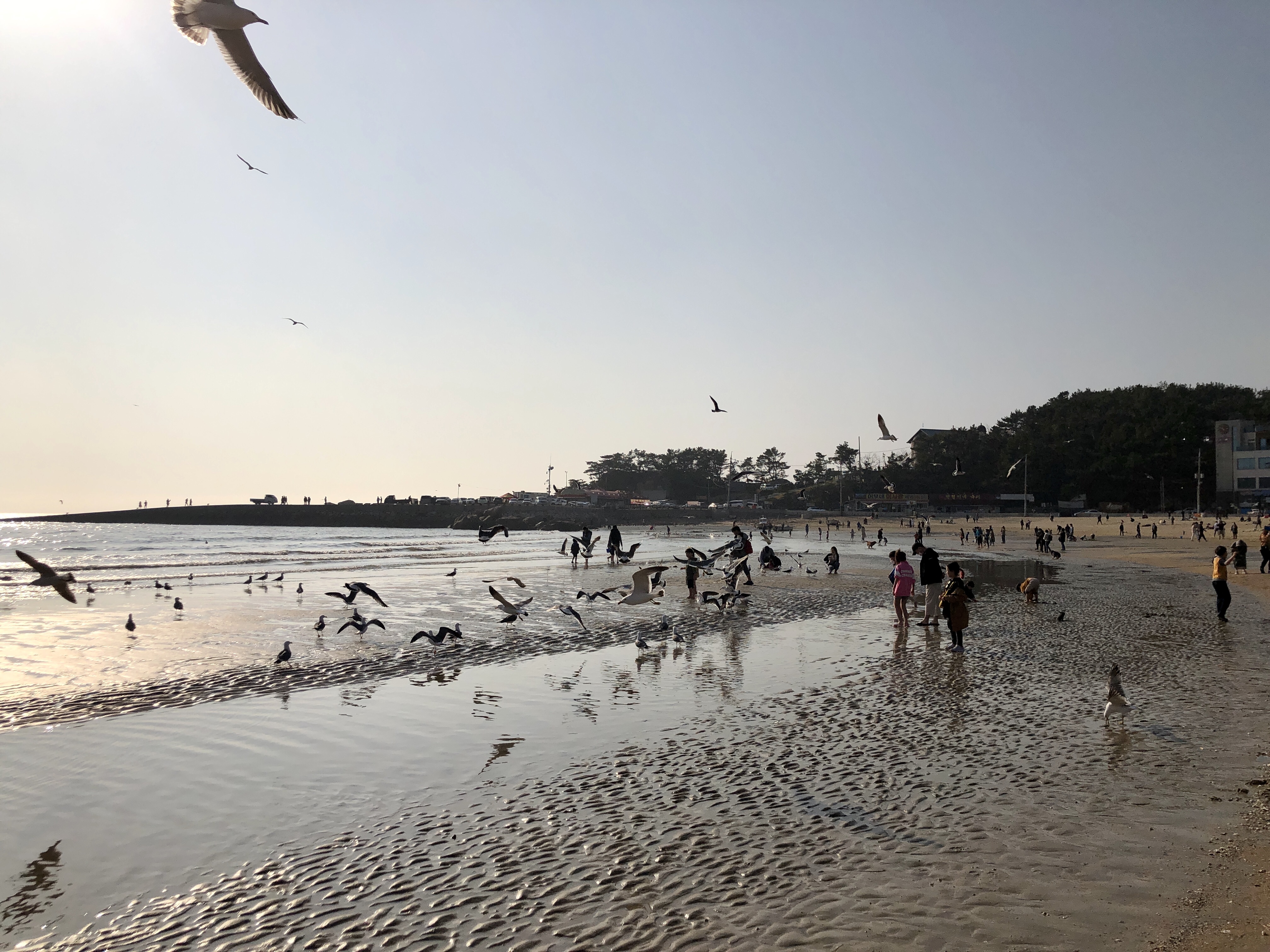 아이들과 반려동물들과 함께 나와서 해변에서 모래장난을 치고, 갈매기 먹이주기 등 각자의 모습대로