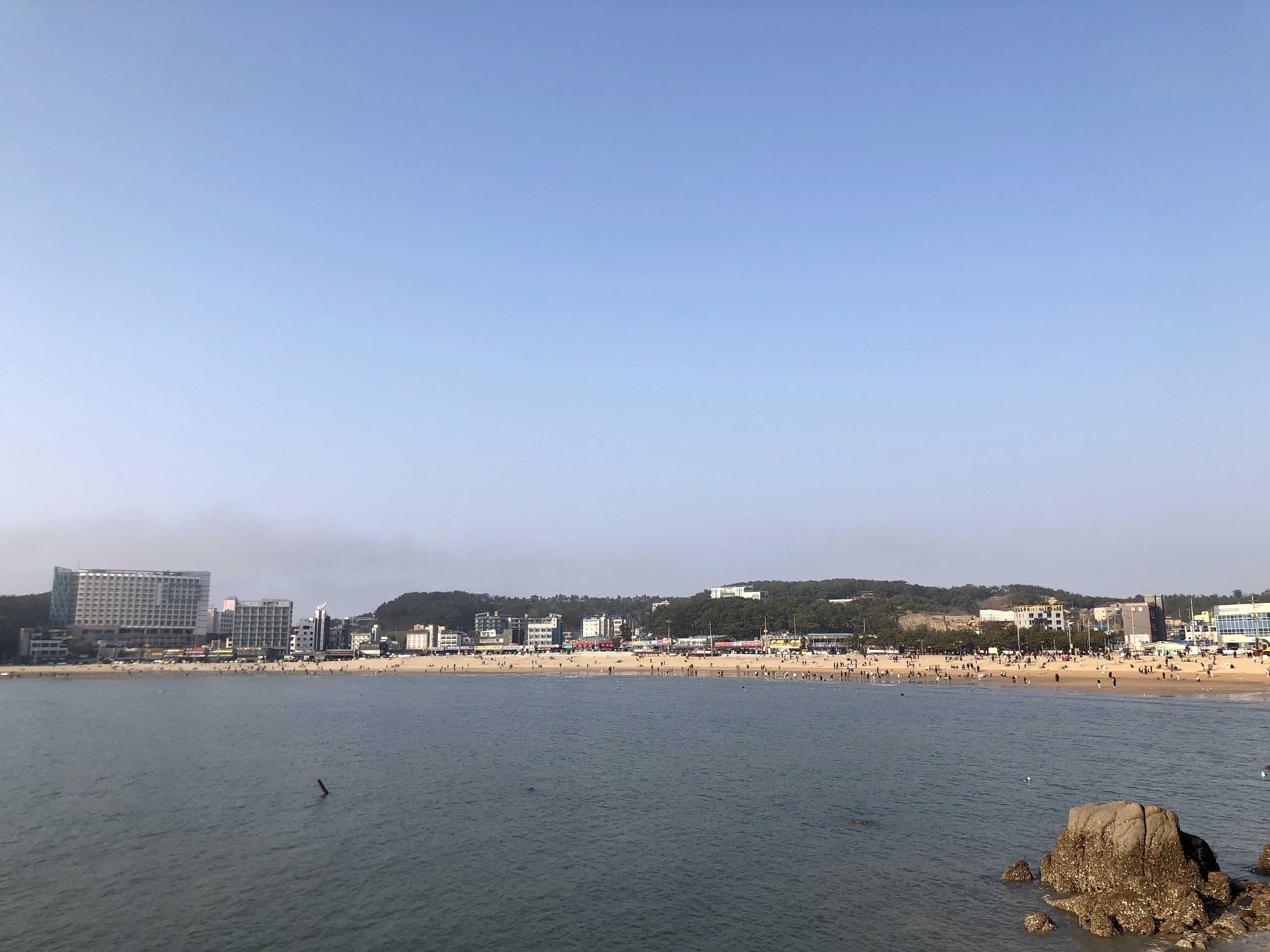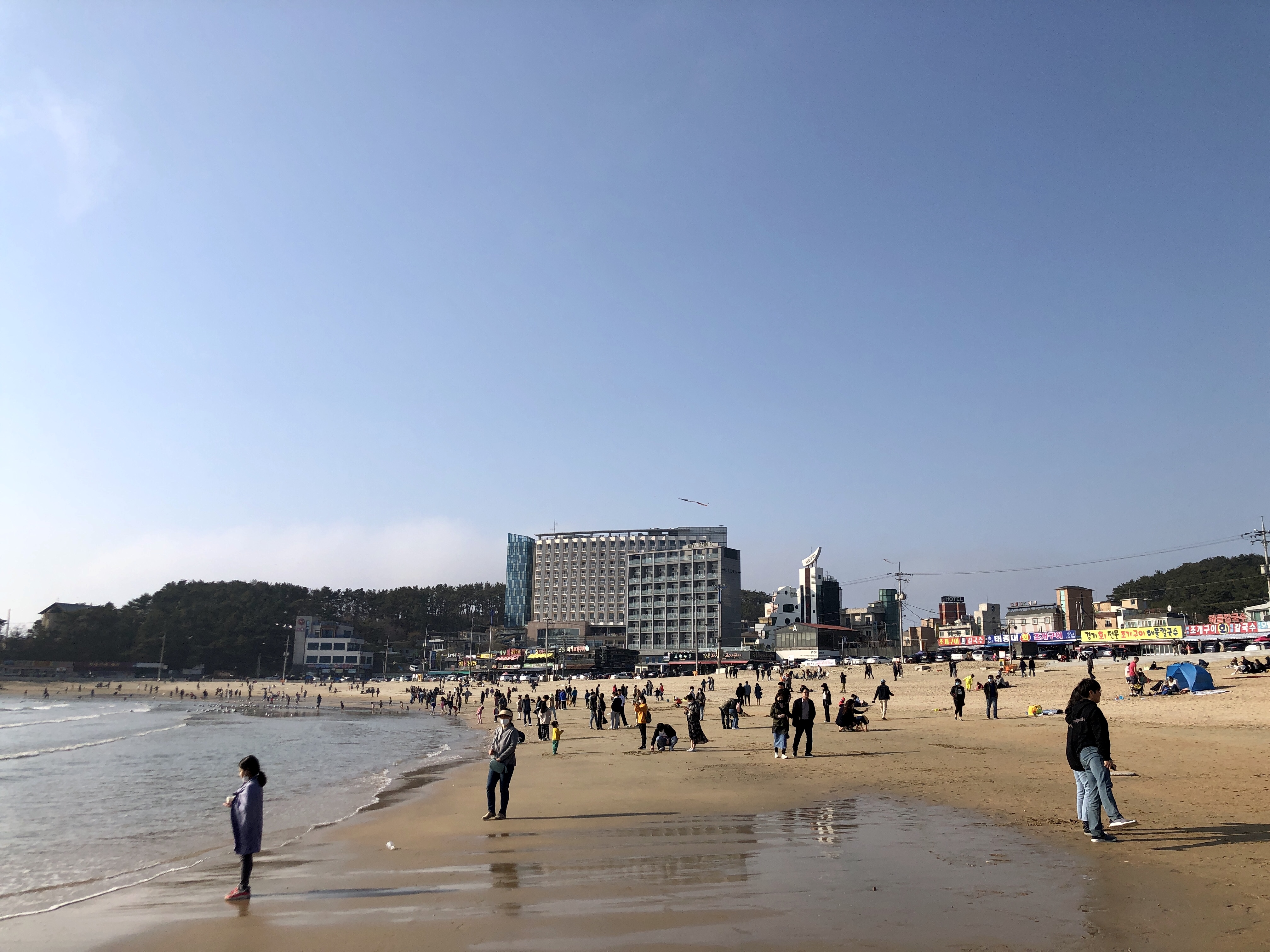 좁은 골목길에 차로 얽힌 입구 도로를 지나서 들어오면 탁 트인 바다와 백사장이 보인다.