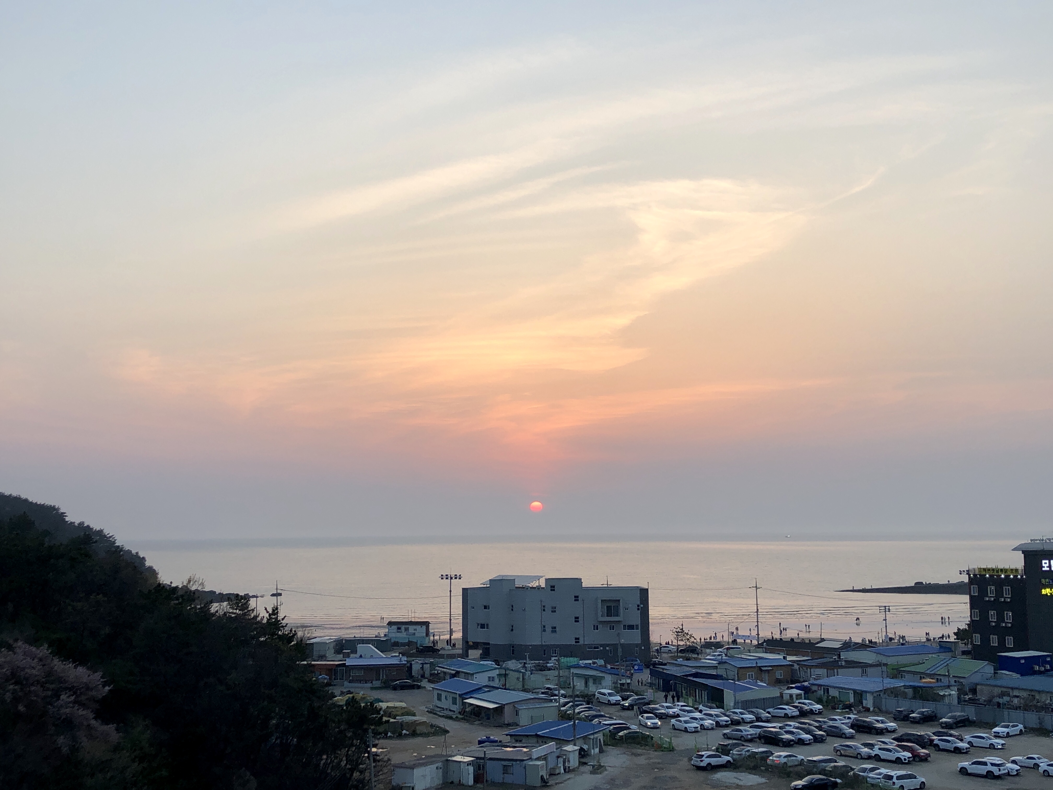 루프탑 카페에서 간식을 먹으며 휴식을 취하다가 서해바다의 일몰을 감상하였다.