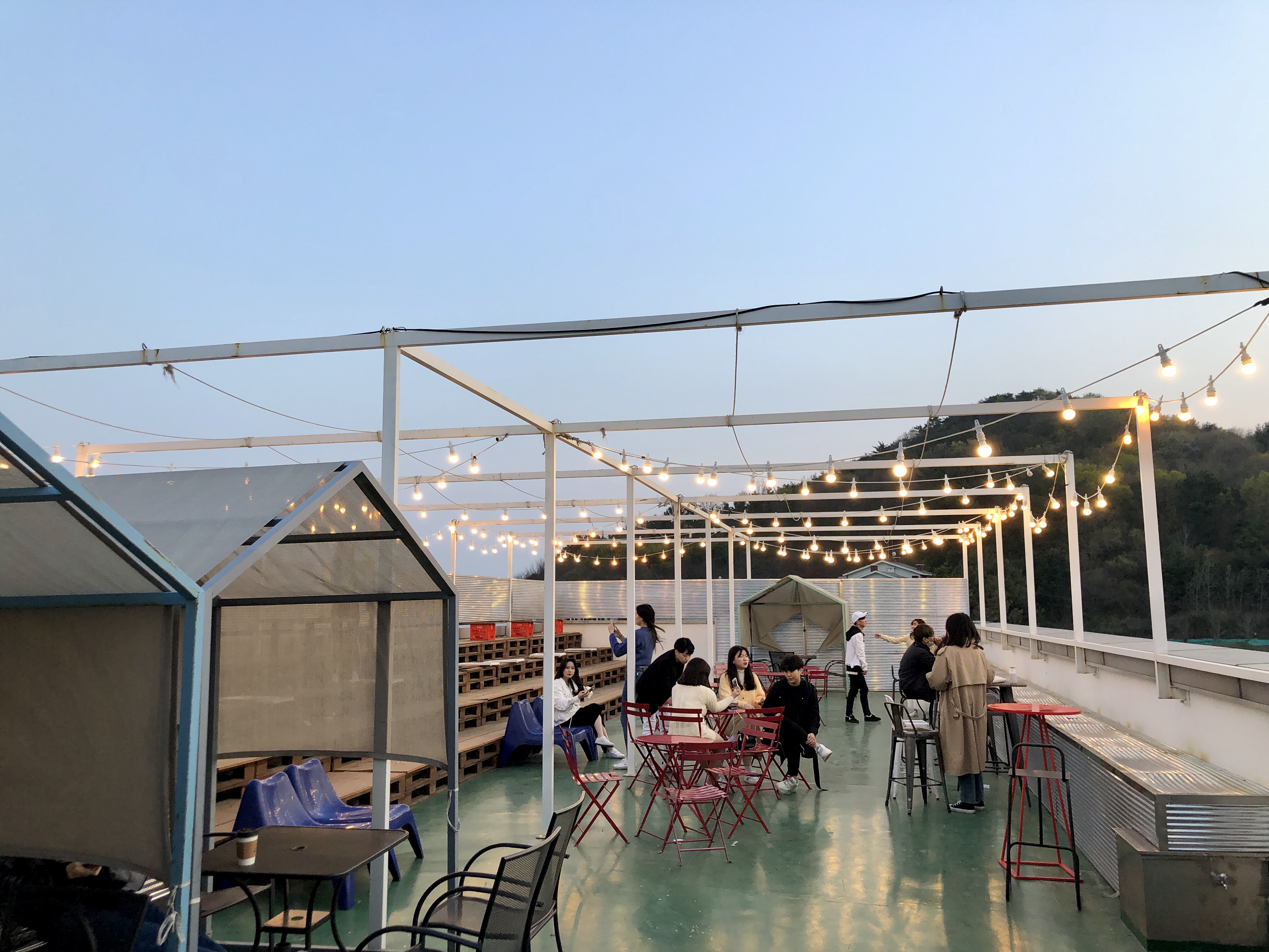 자리를 정리하고 엘리베이터를 타고 일몰을 감상하러 5층으로 올라갔다.