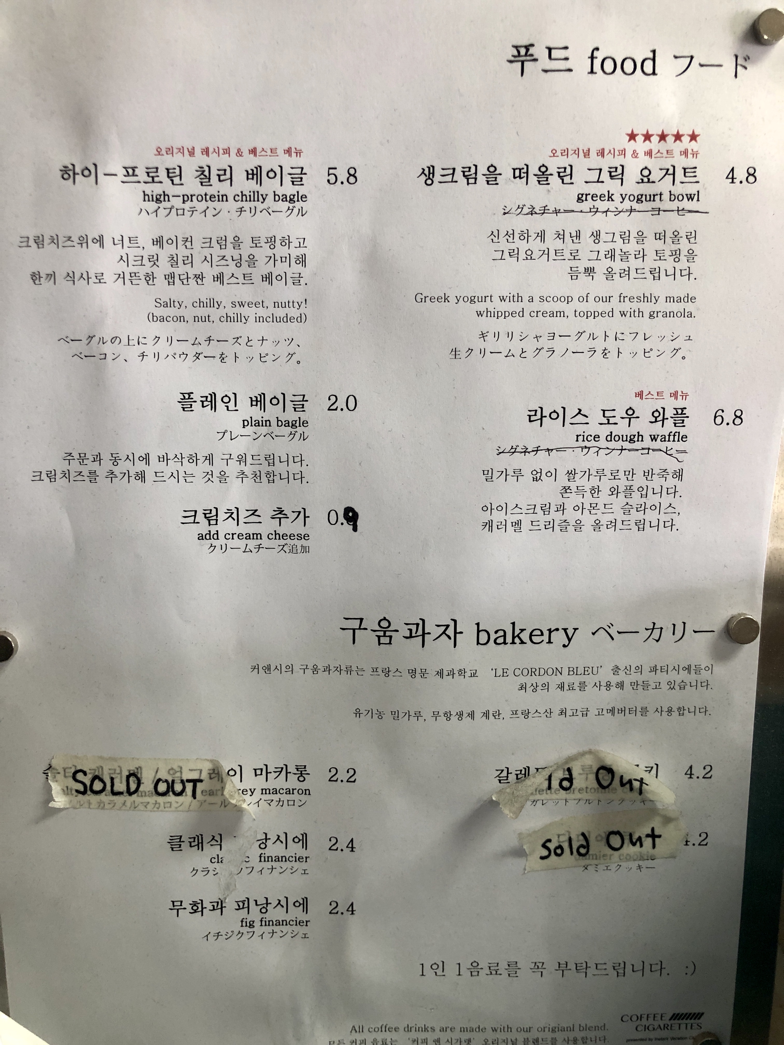 그리고 베이글, 와플, 과자, 마카롱, 무화과 피낭시에 등 간단한 음식도 판매하고 있었다.