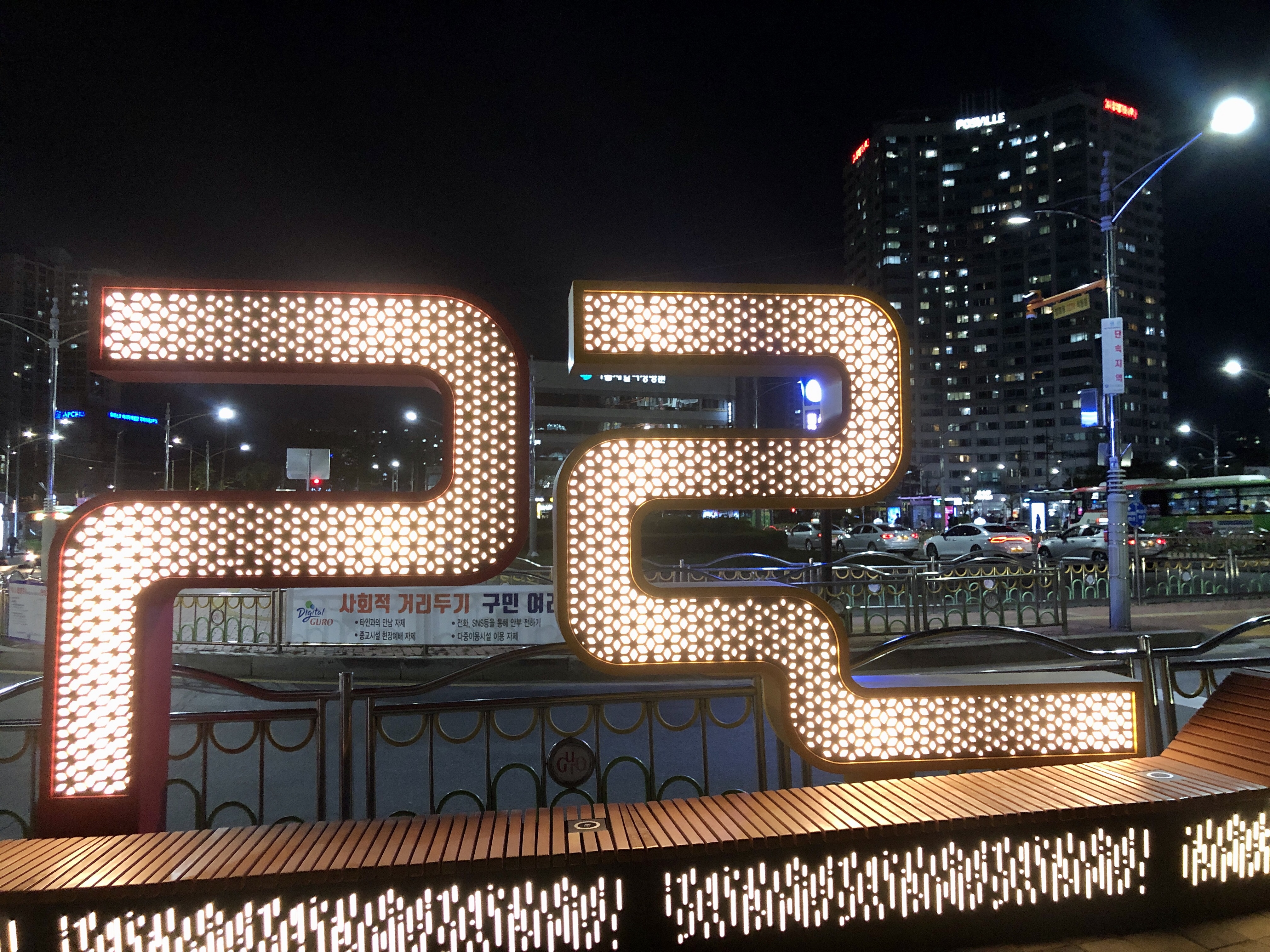 다 먹고 신도림역 뒤편으로 나오니 예쁜 '구로' 마크가 있다.
