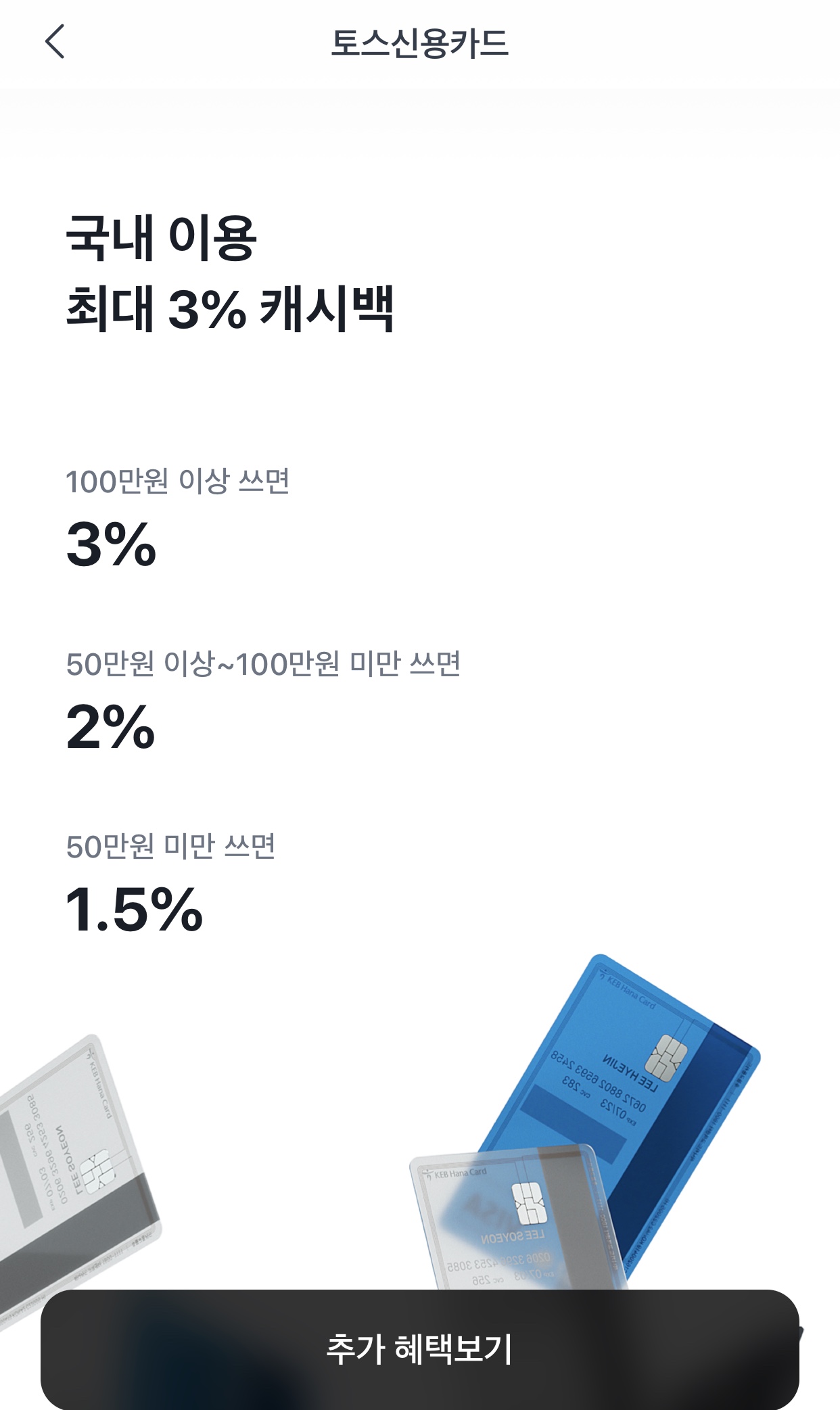혜택대상 : 토스 앱에서 신청한 토스신용카드