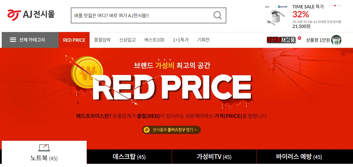그리고 Red Price라는 탭을 통해 선착순으로 매우 저렴하게 전자제품을 판매하고 있다.