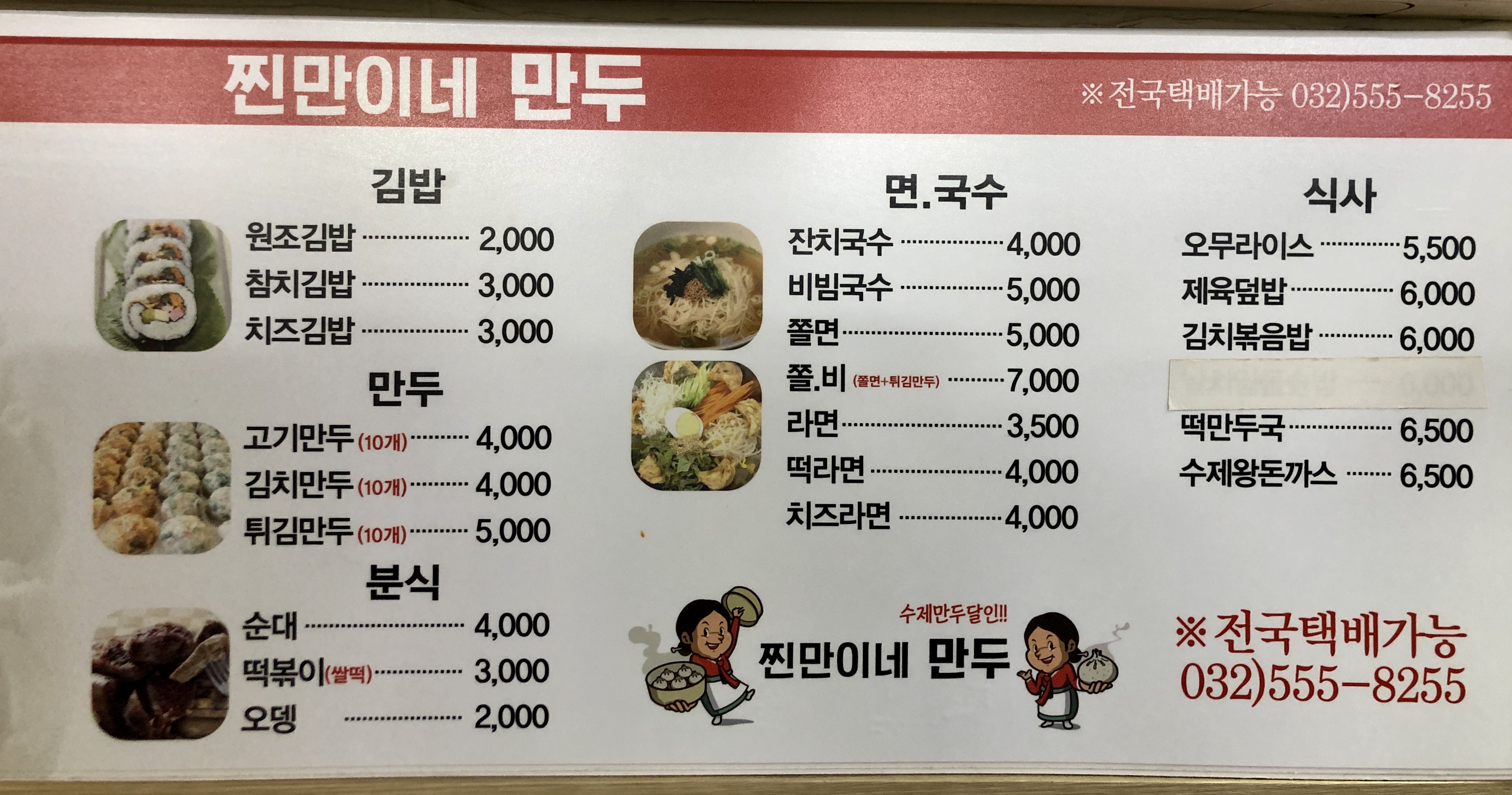 메인 메뉴인 만두 이외에도 분식류와 국수 그리고 식사류도 함께 판매하고 있었다.