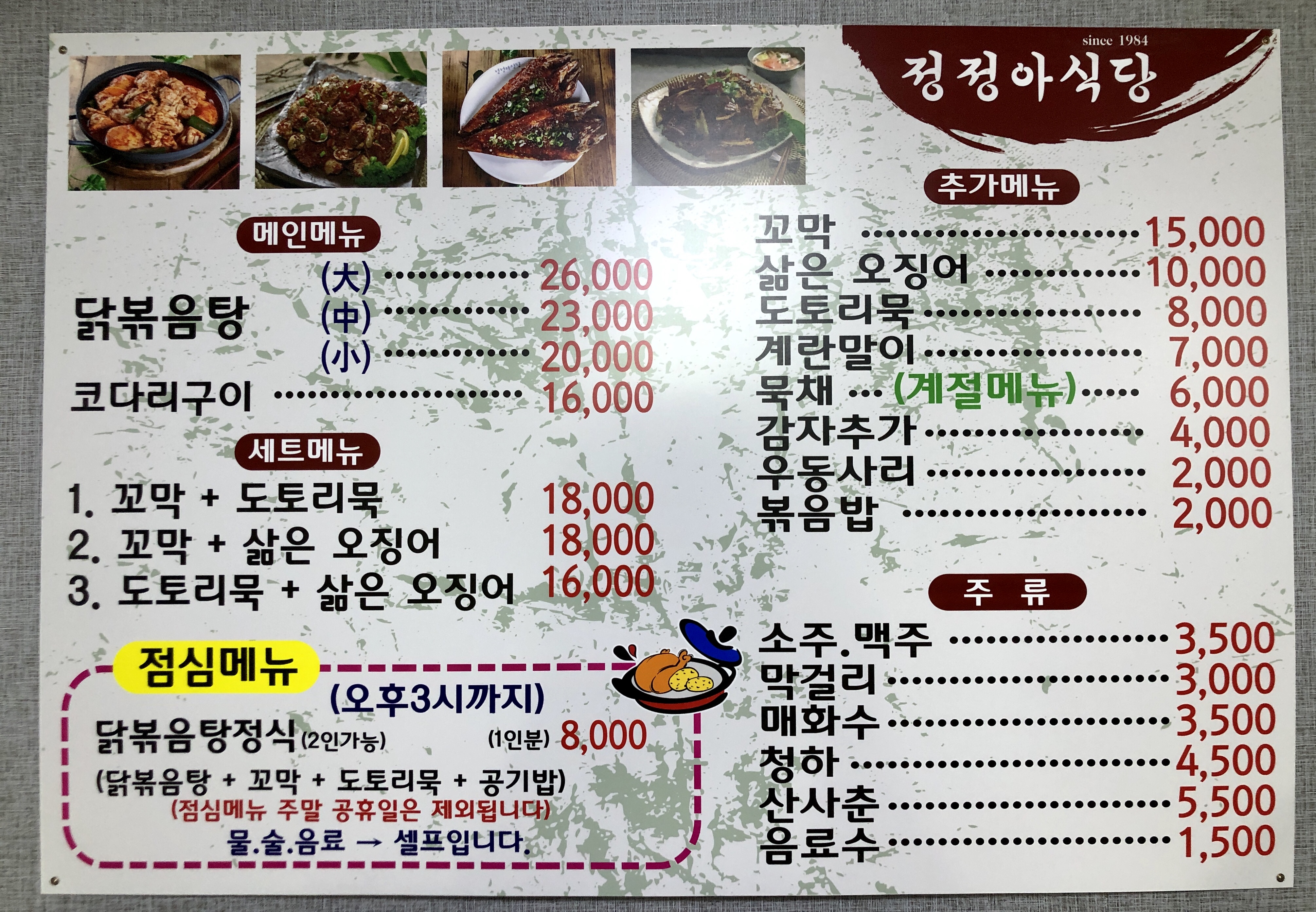 마침 부평 산곡동에 위치함 본점을 지나게 되어, 오랜만에 닭볶음탕을 먹으러 갔다.