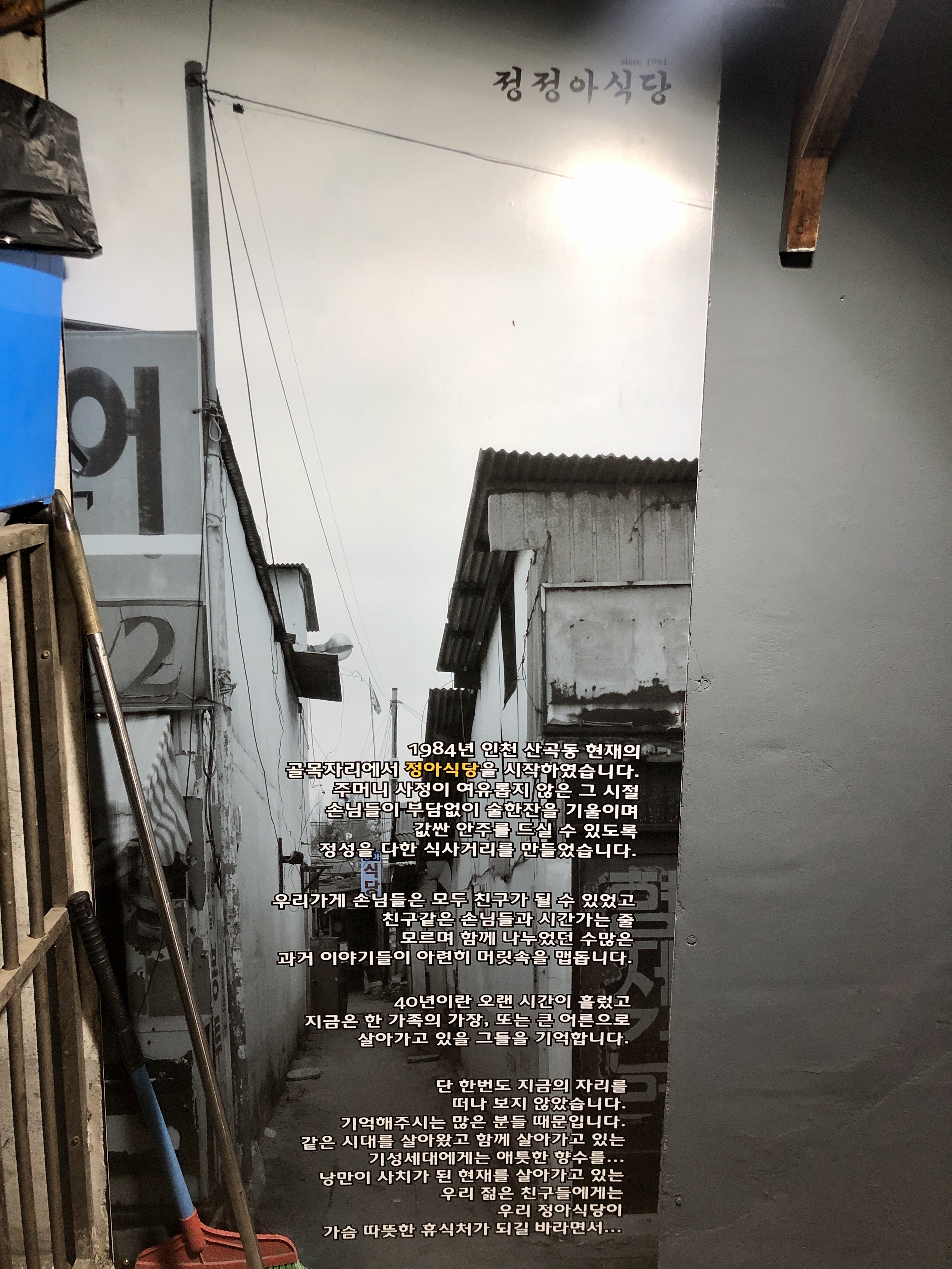 정아식당은 1984년 산곡동 골목에서 시작하여 아직도 자리를 키기고 있는 역사 싶은 식당이라고 한다.