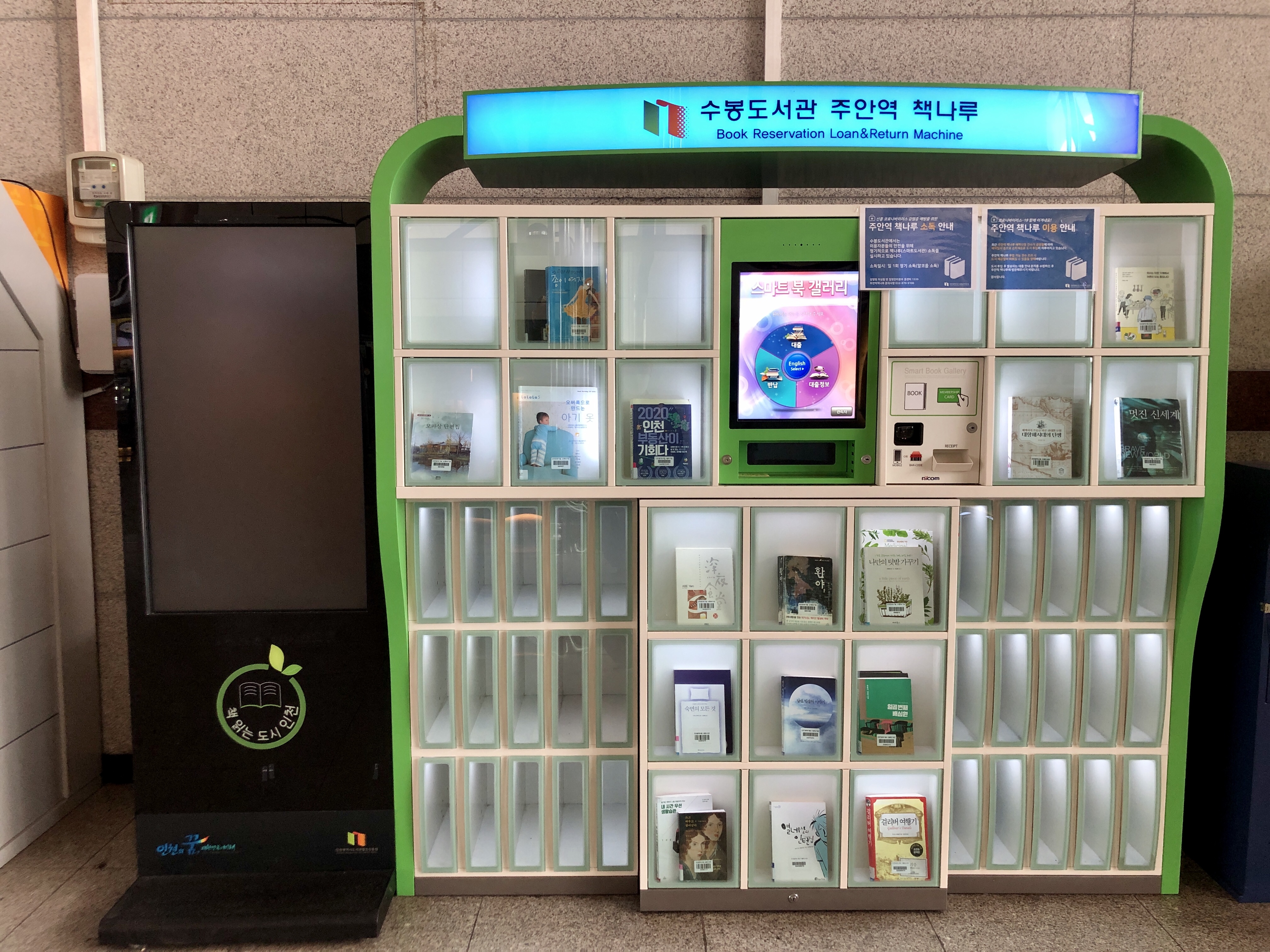 주안역 책나루는 역사 2층 지하철 탑승장 우측에 기계 형태로 운영되고 있다.