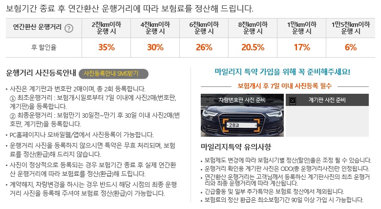 운행거리는 최초 보험개시일로부터 7일 이내에 차량사진과 계기판 사진을 촬영하여 사이트에 등록하면 된다.