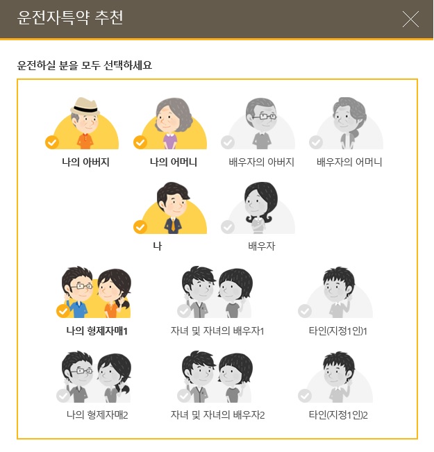해당 차량을 나 혼자 운행하는 것이 아닌 가족이나 타인의 운전자 범위를 지정할 때,