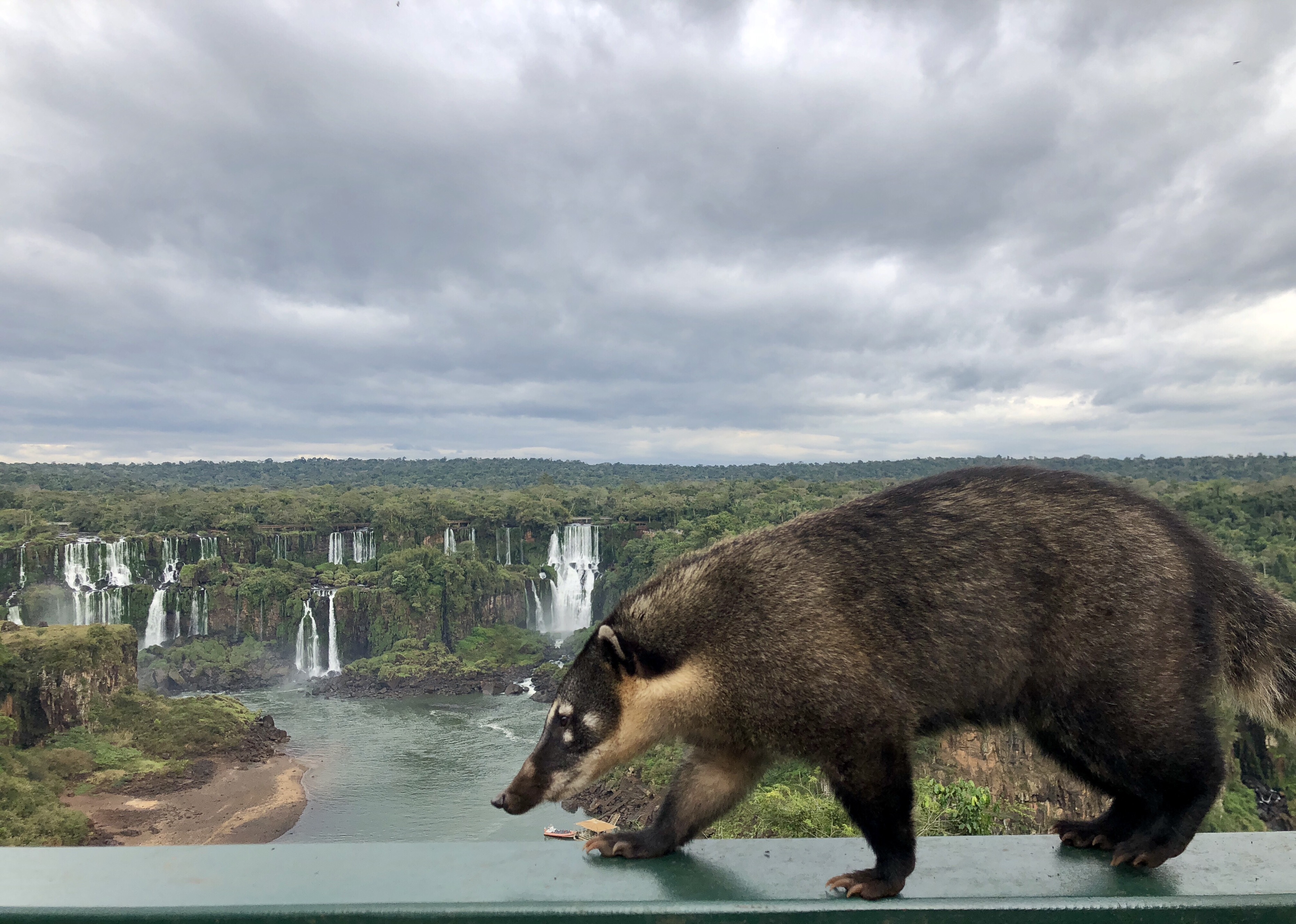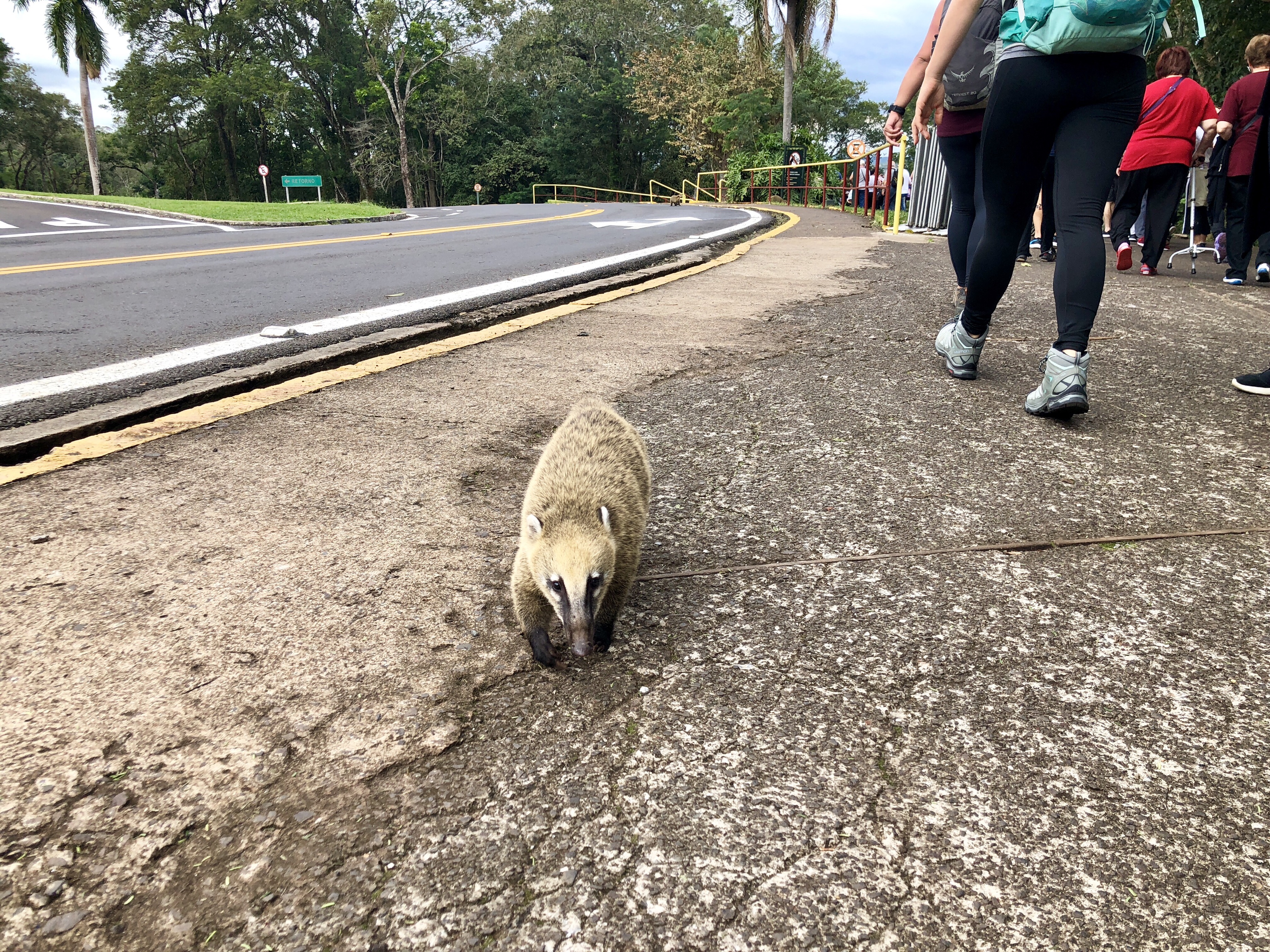 이곳에도 역시 너구리과의 동물 쿠아치 Quati 가 사람들에게 다가와 먹을 것을 내놓으라며