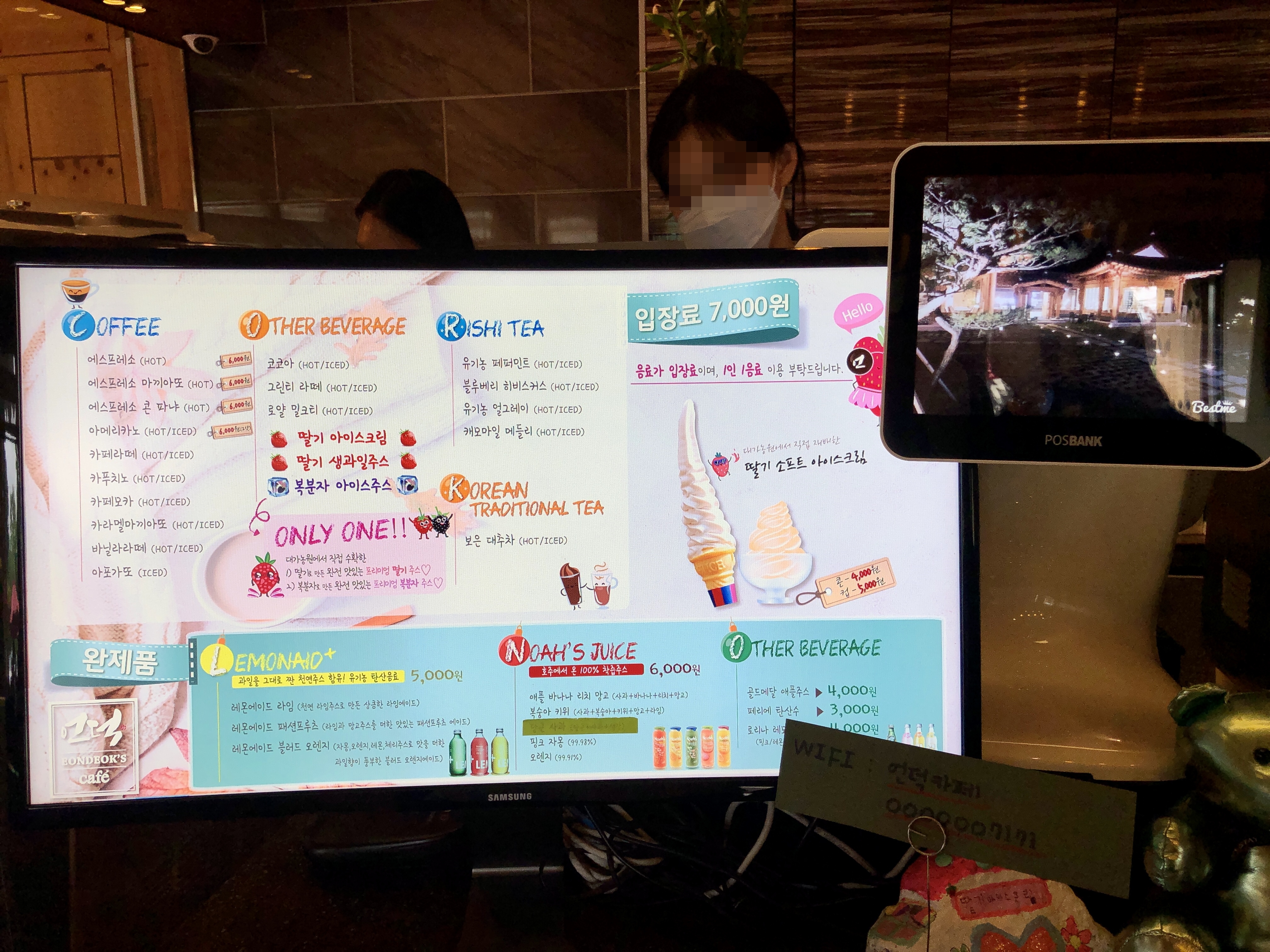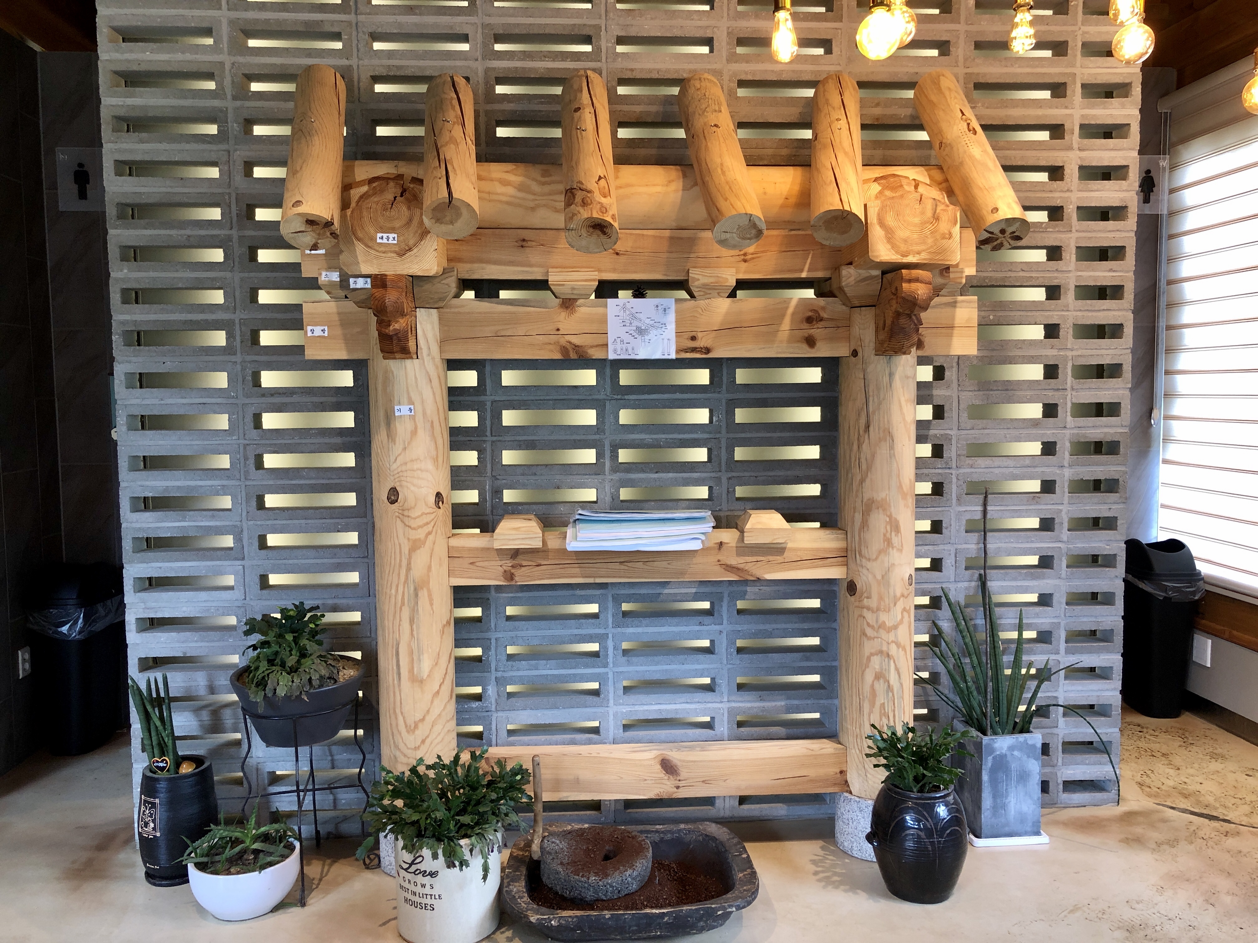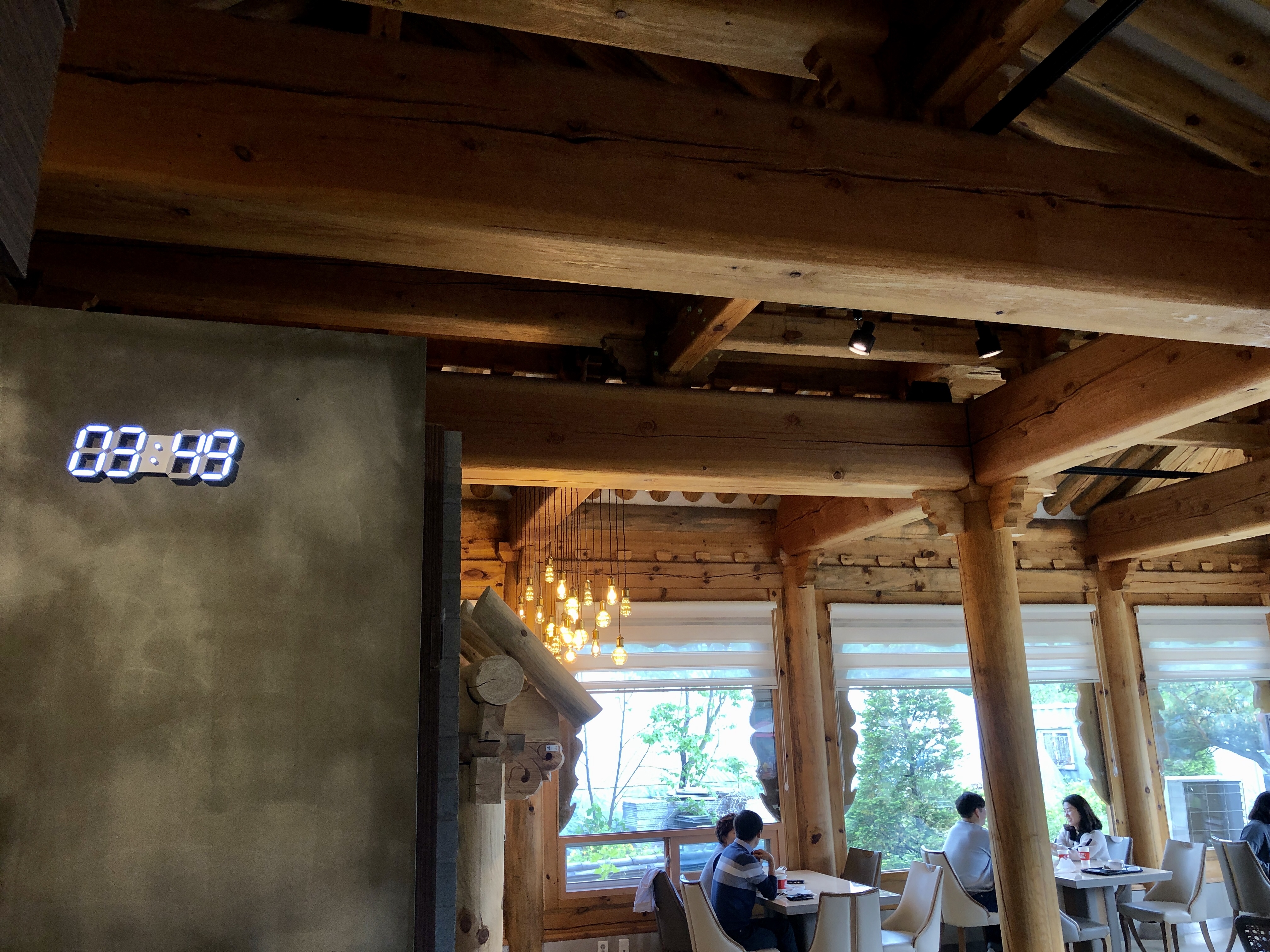 대신 한옥스타일의 인테리어와 벽의 LED시계와 콘크리트의 조화는 독특하게 다가왔어요