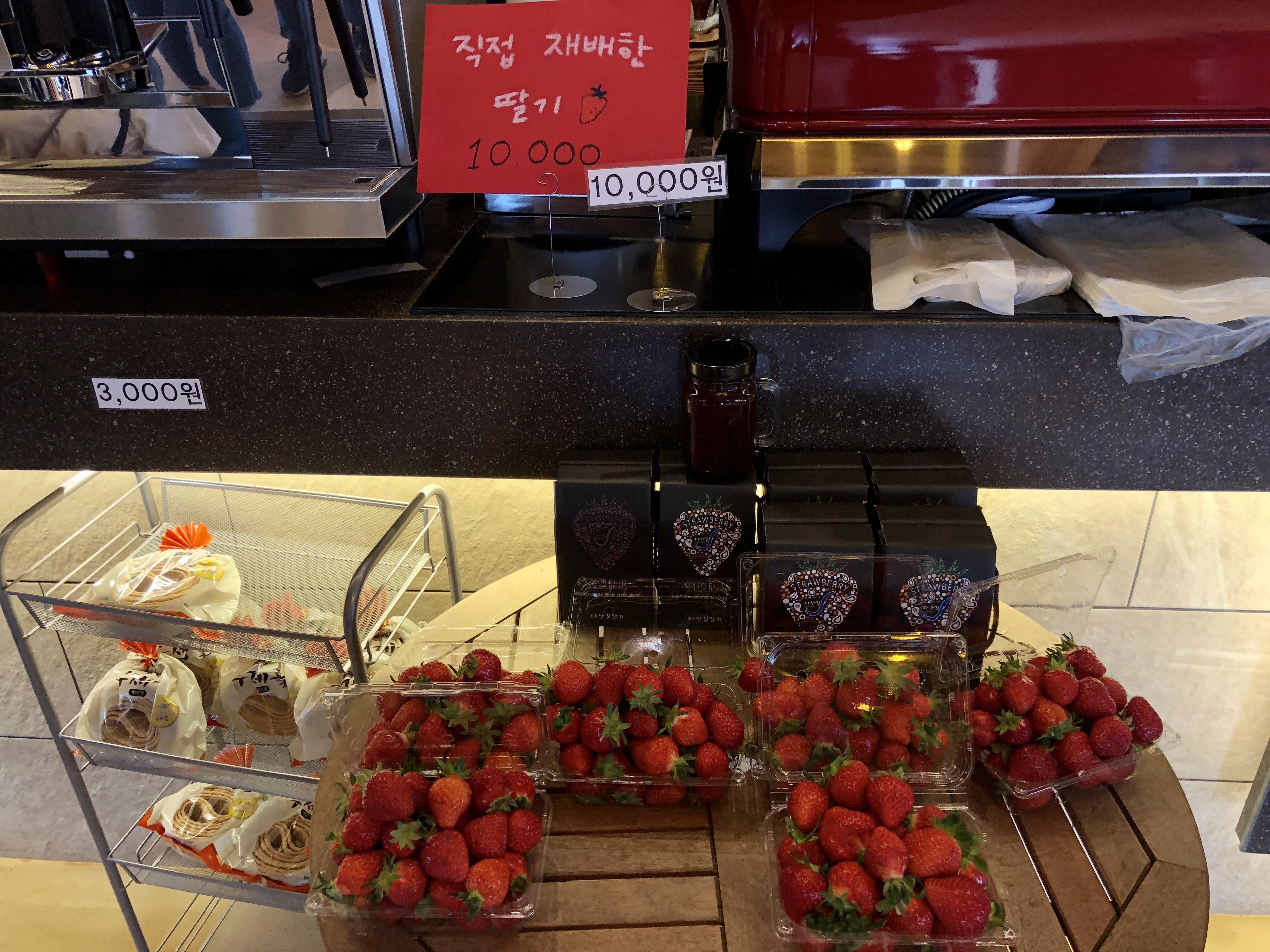 이곳에서는 사장님이 직접 재배한 유기농이라며 딸기를 판매하고 있었는데요~