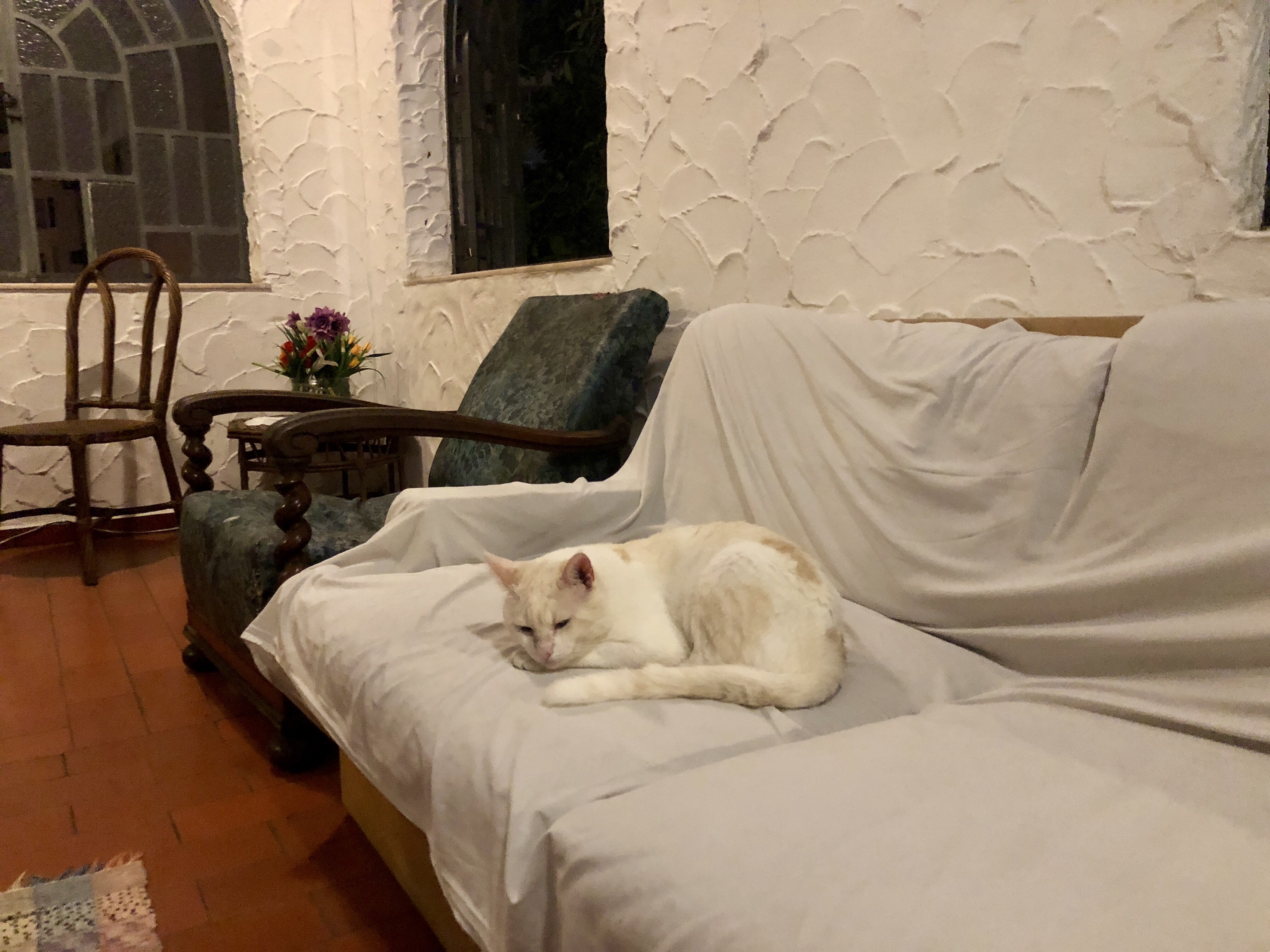 대신 한쪽 구석에 새침하게 누워있던 고양이와 조금 놀아주었다.