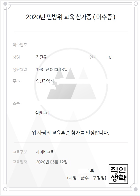 전역 후, 8년간의 예비군을 거쳐 이제는 어느덧 벌써 민방위 6년 차가 되었습니다.