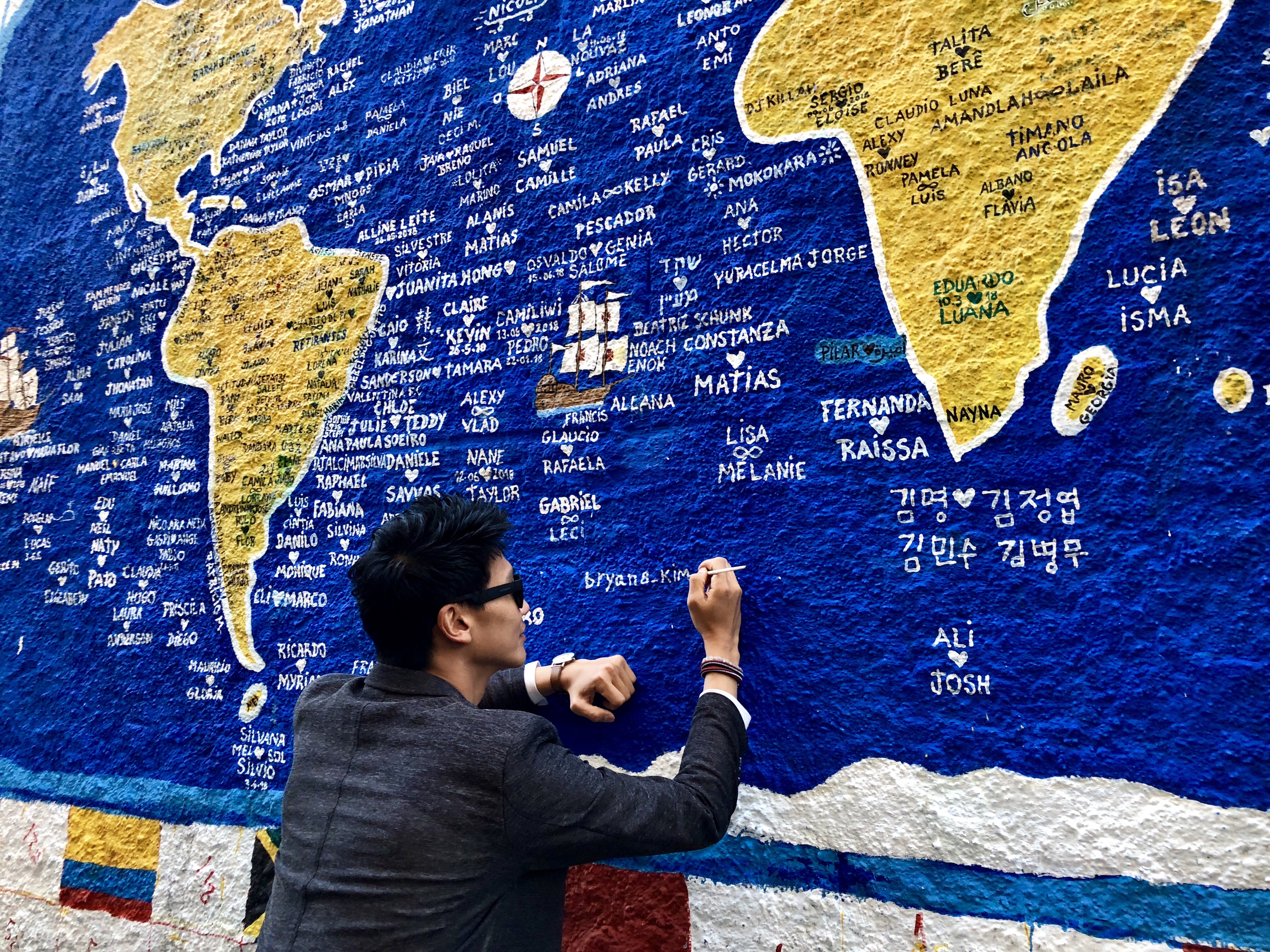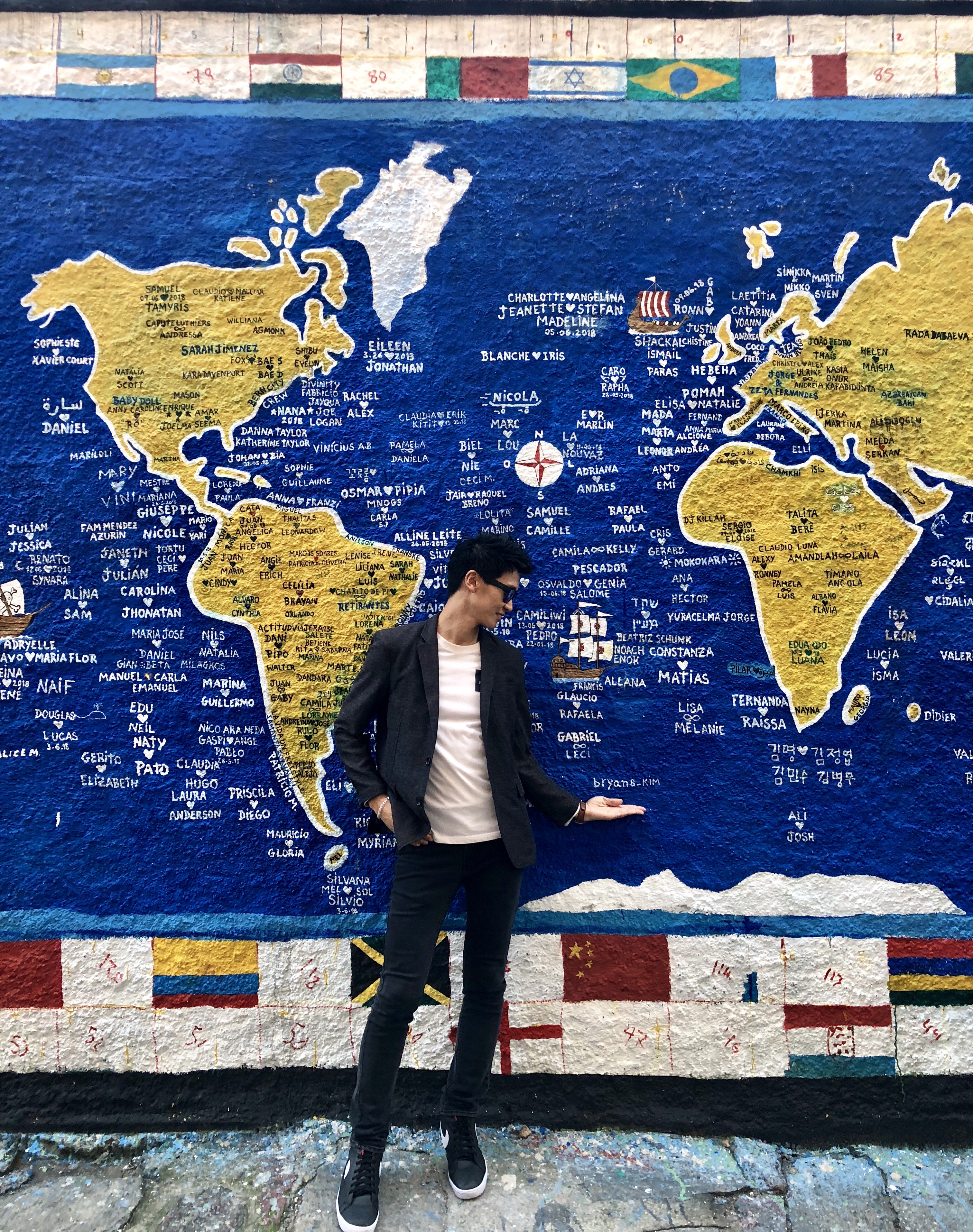 리우에서 가장 유명한 셀라론 계단을 가기전에 골목에 세계지도가 그려진 벽화가 있다.