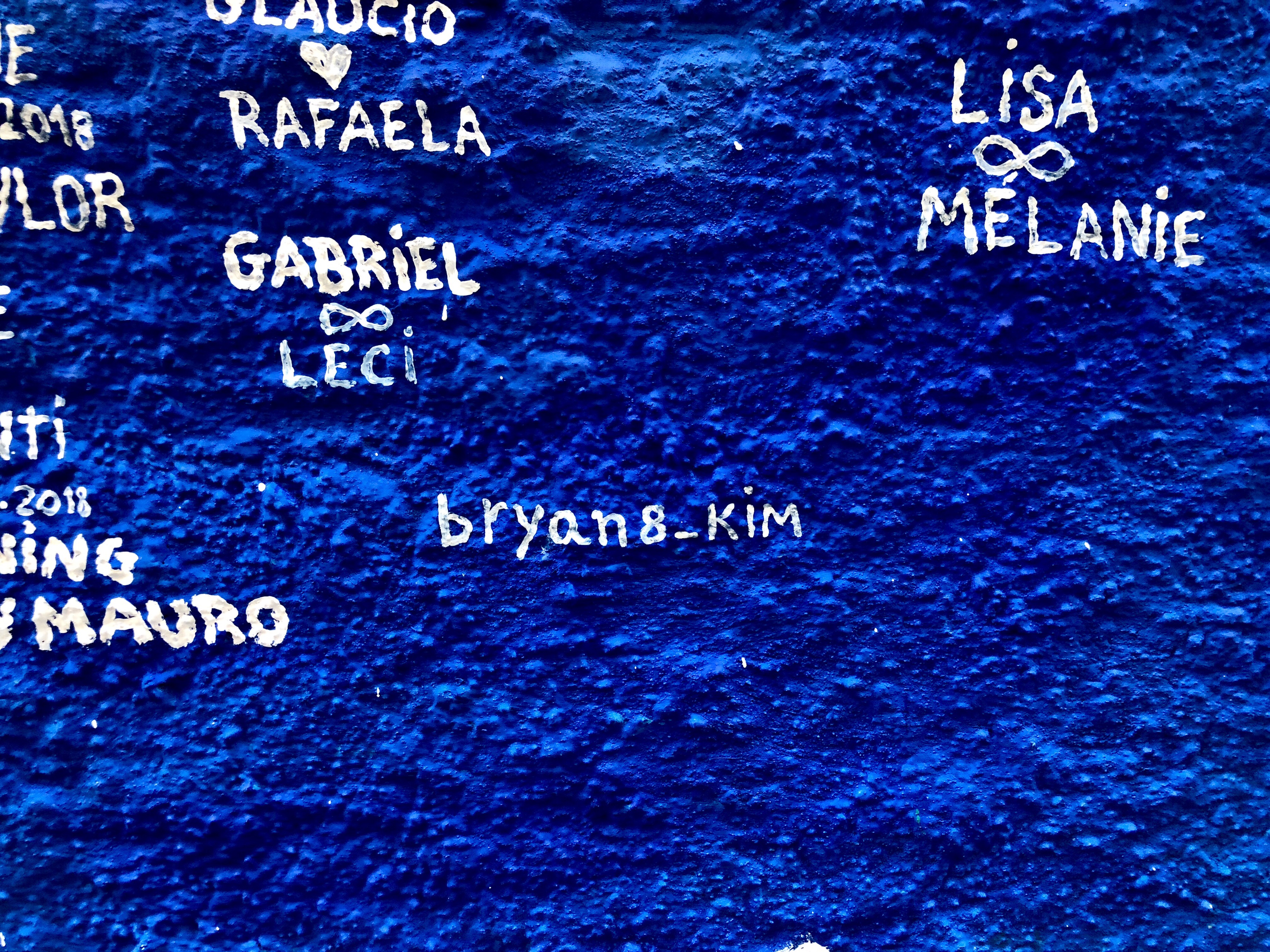 이 벽화의 파랑색 바다부분에 돈을내면 자신이 원하는 문구를 새겨준다.
