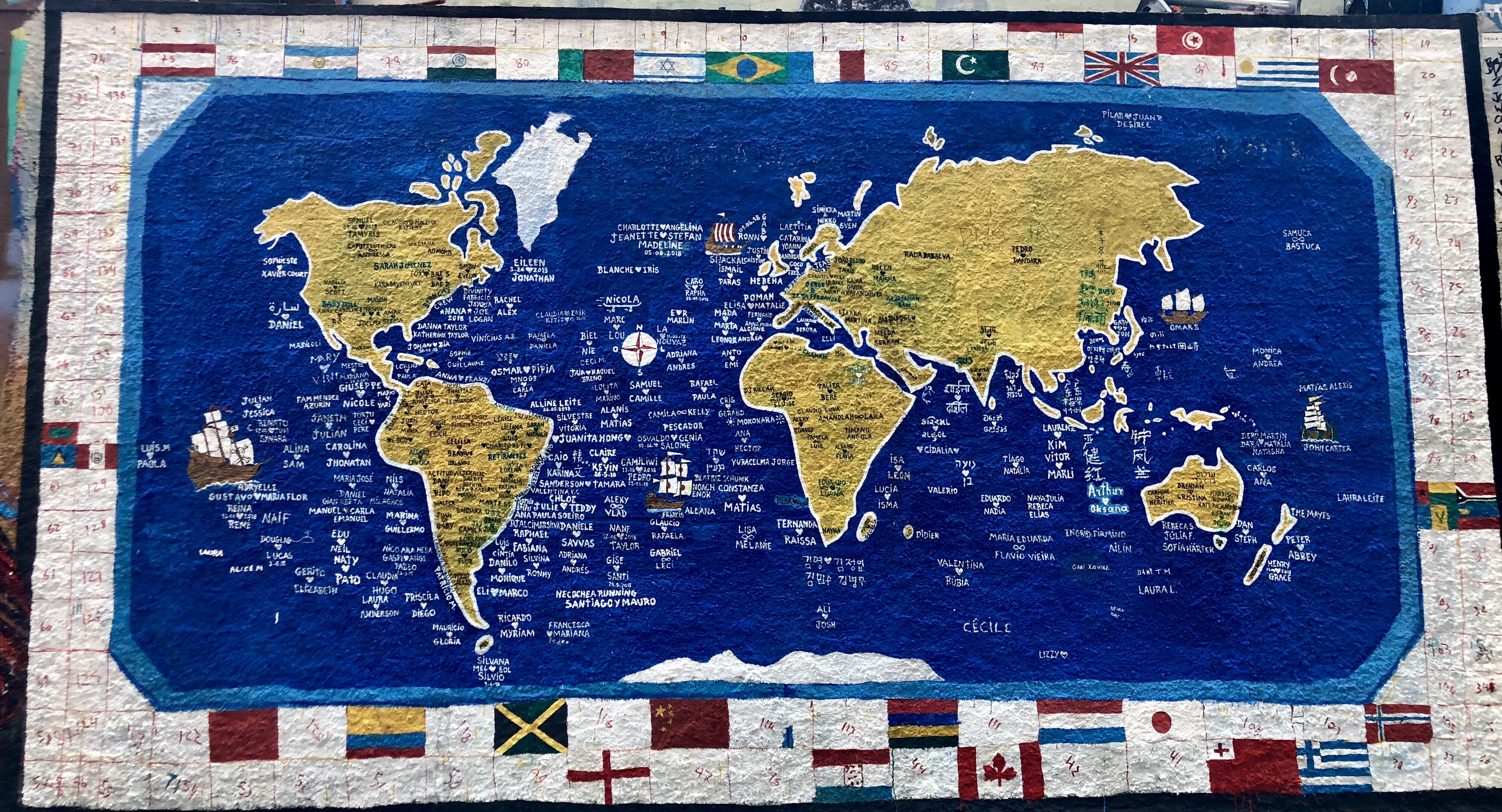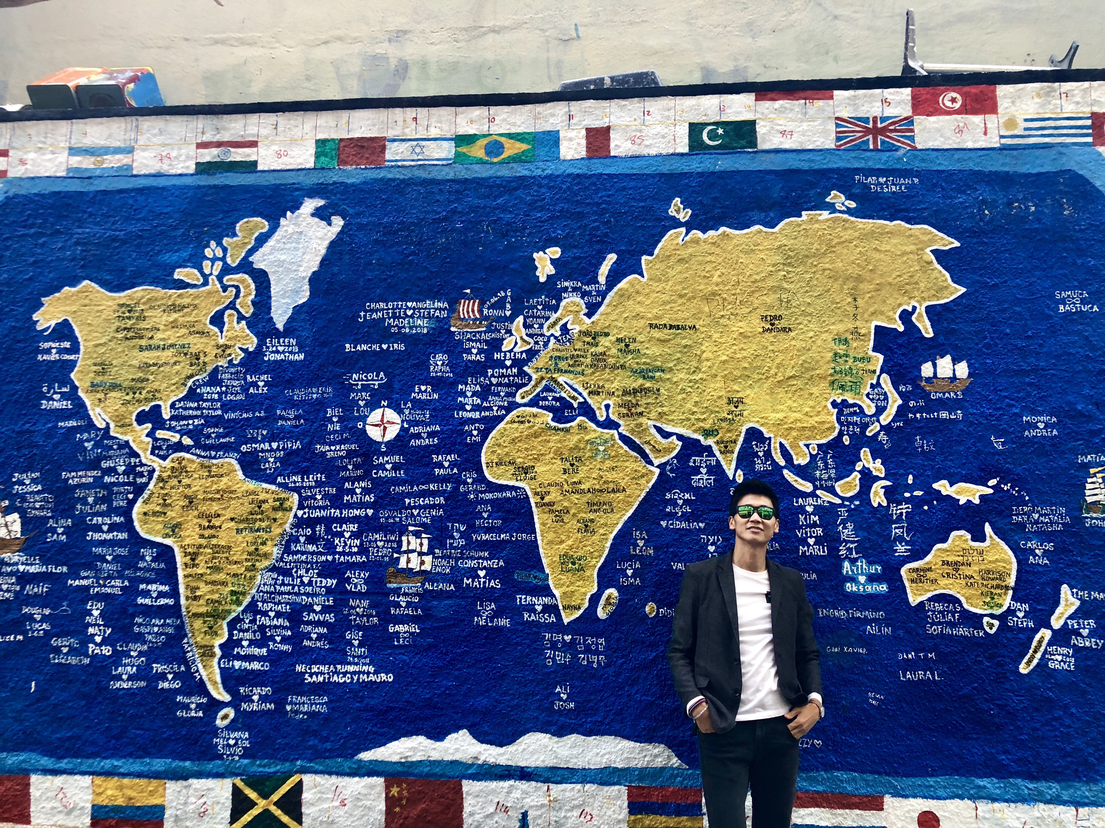 리우에서 가장 유명한 셀라론 계단을 가기전에 골목에 세계지도가 그려진 벽화가 있다.