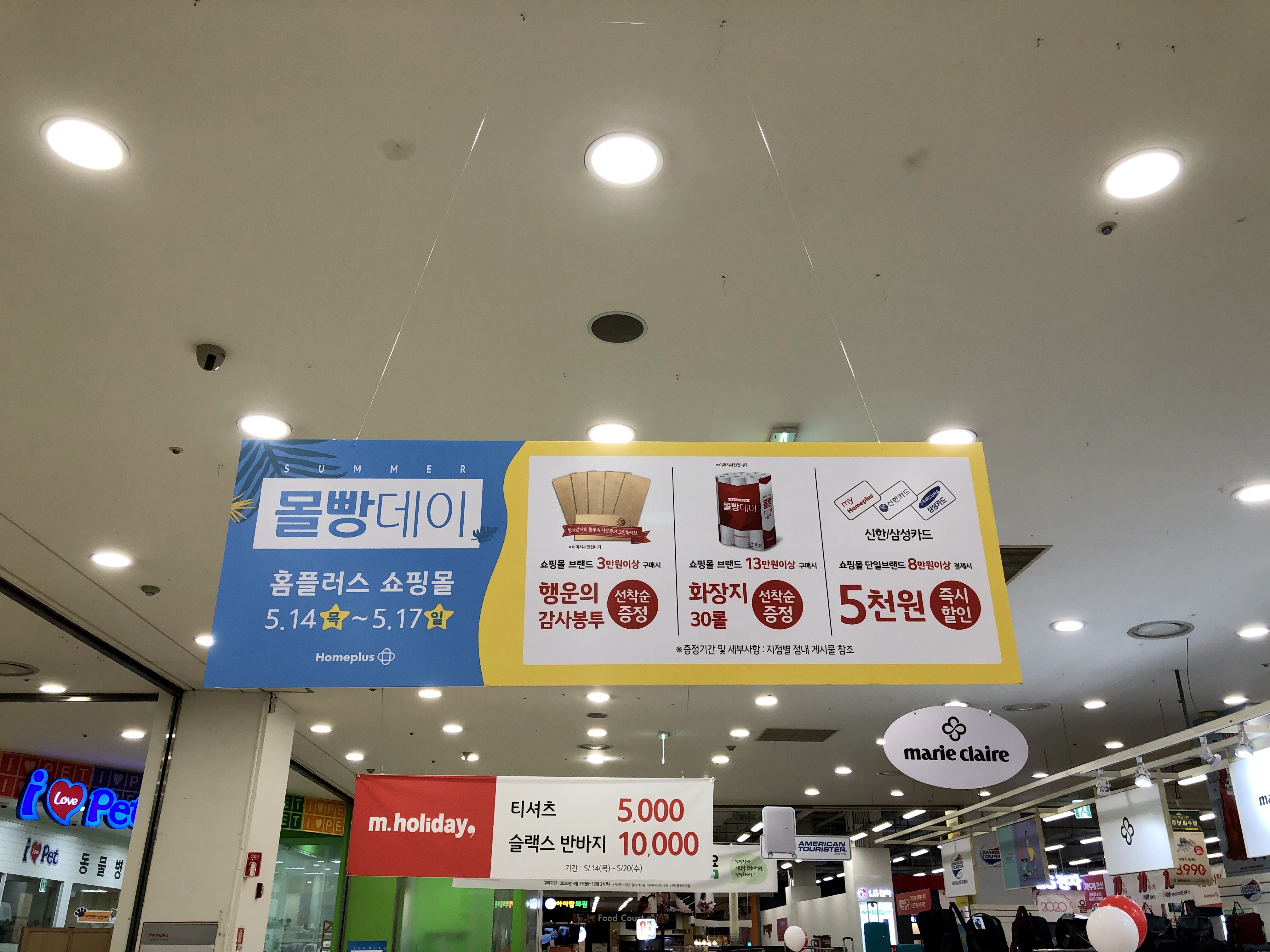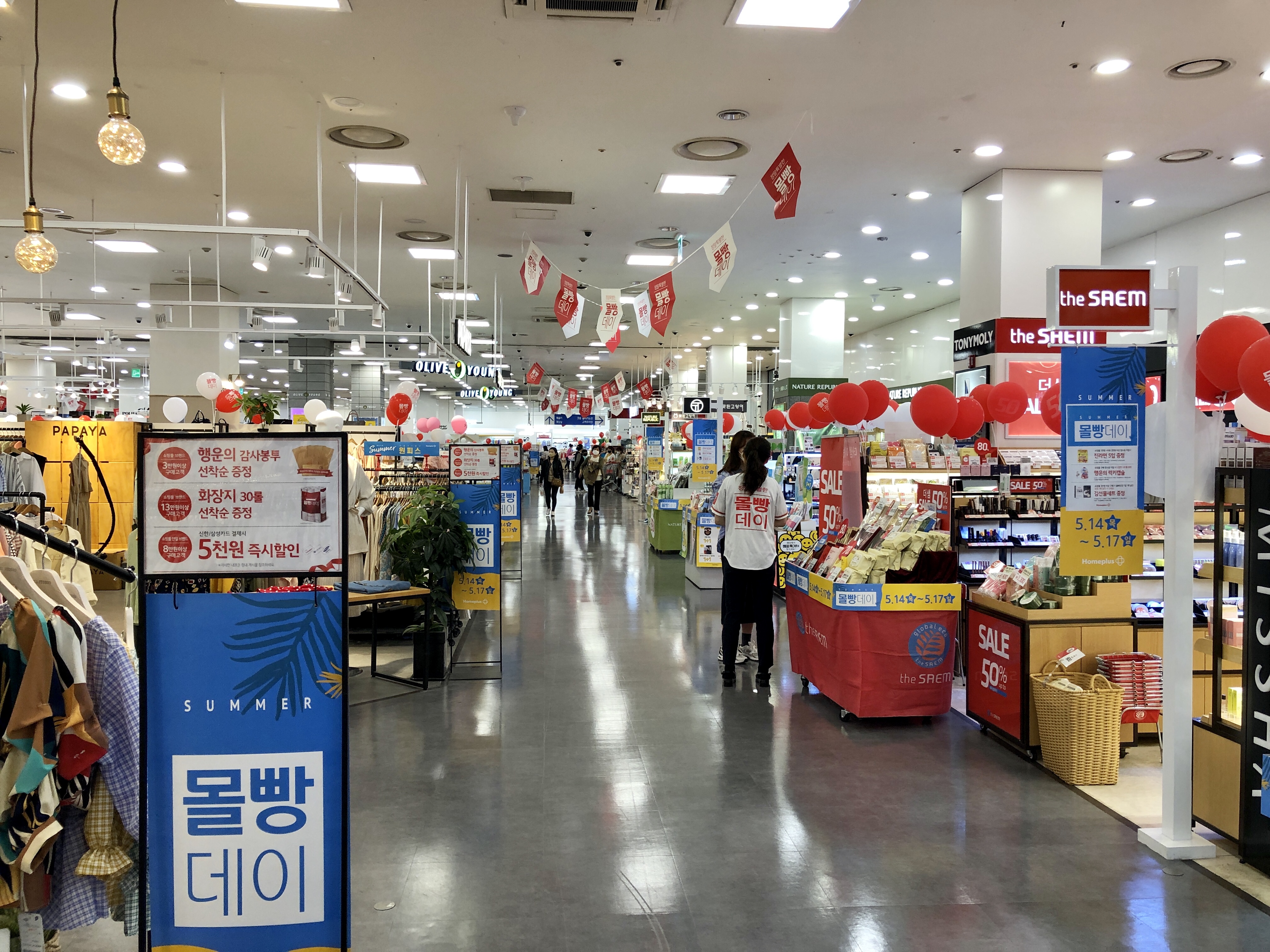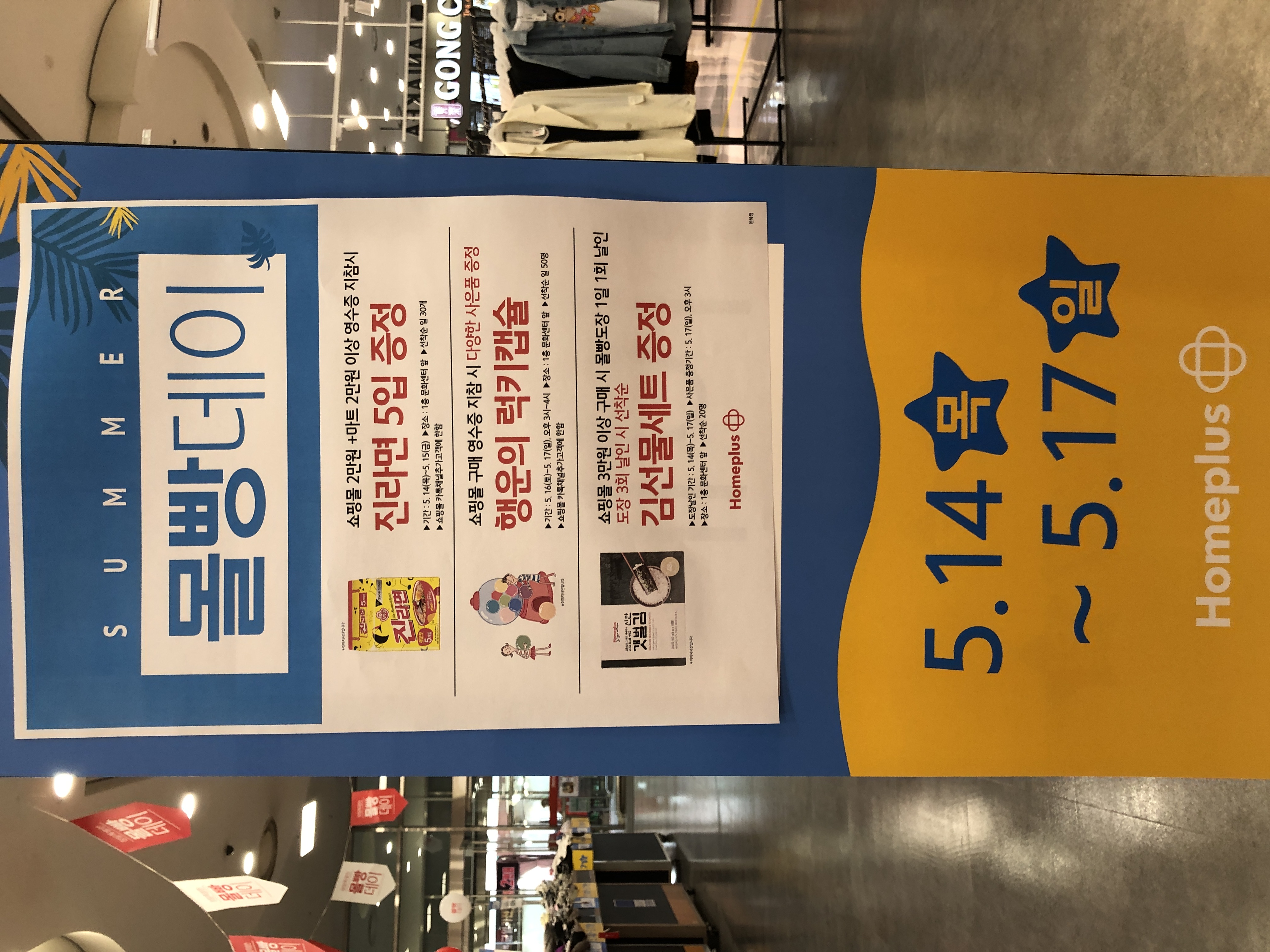 홈플러스 매장내에는 5월14일(목) 부터 5월17일(일) 까지의 몰빵데이 행사를 알리는 광고판이