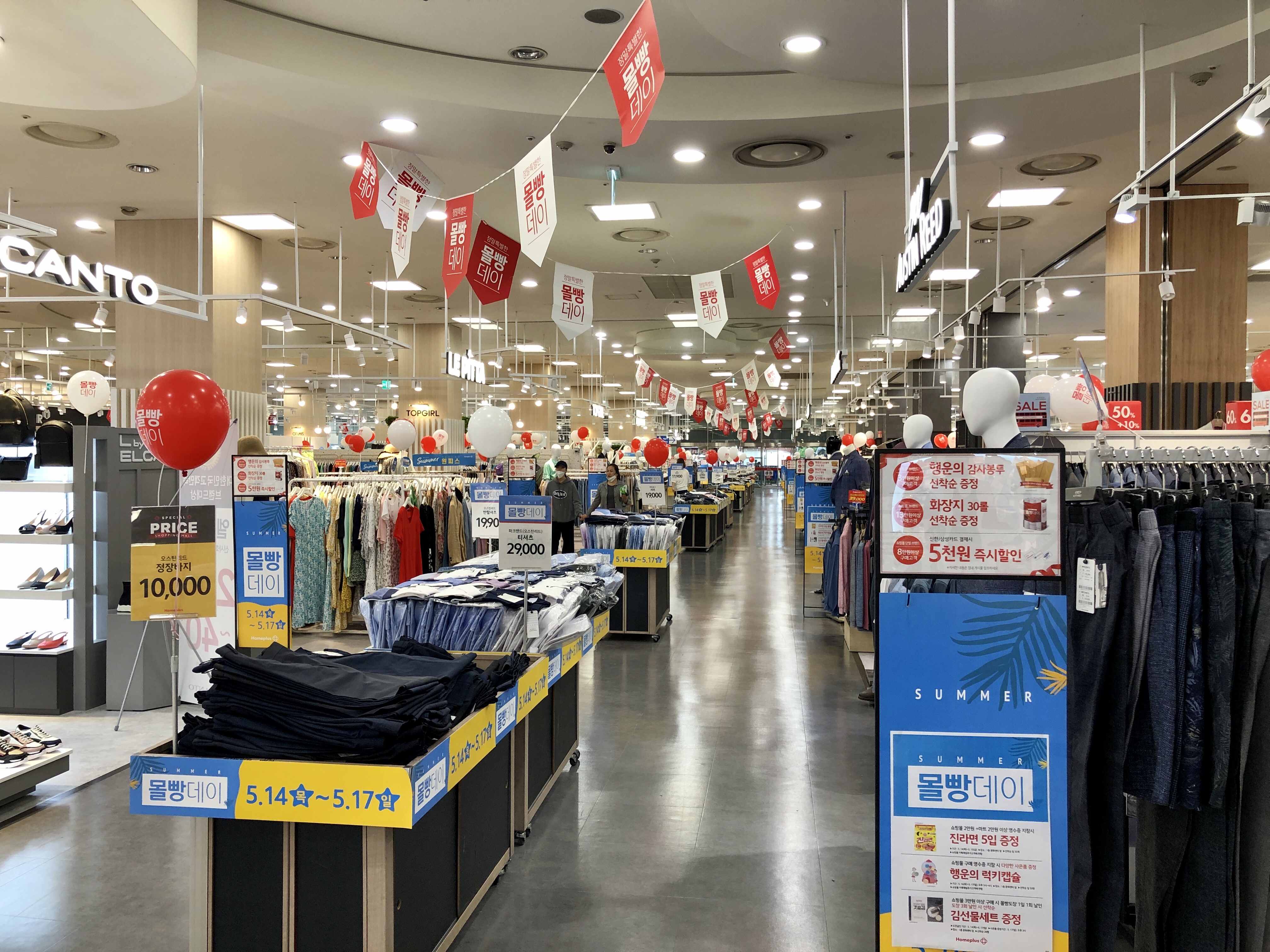 전국 모든 홈플러스 매장에서 5월 14일에서 17일까지 패션·준보석·신발·리빙·가구 등