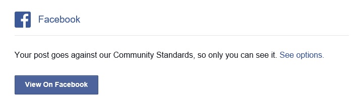 회원님의 게시물이 스팸에 관한 Facebook 커뮤니티 규정을 위반하므로 회원님만