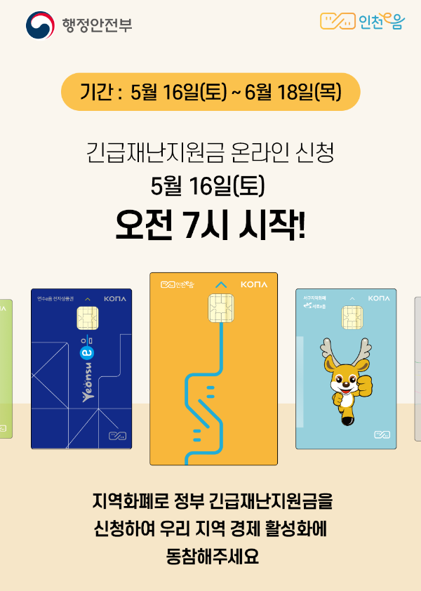 1. 긴급재난금 인천e음카드 신청 기간