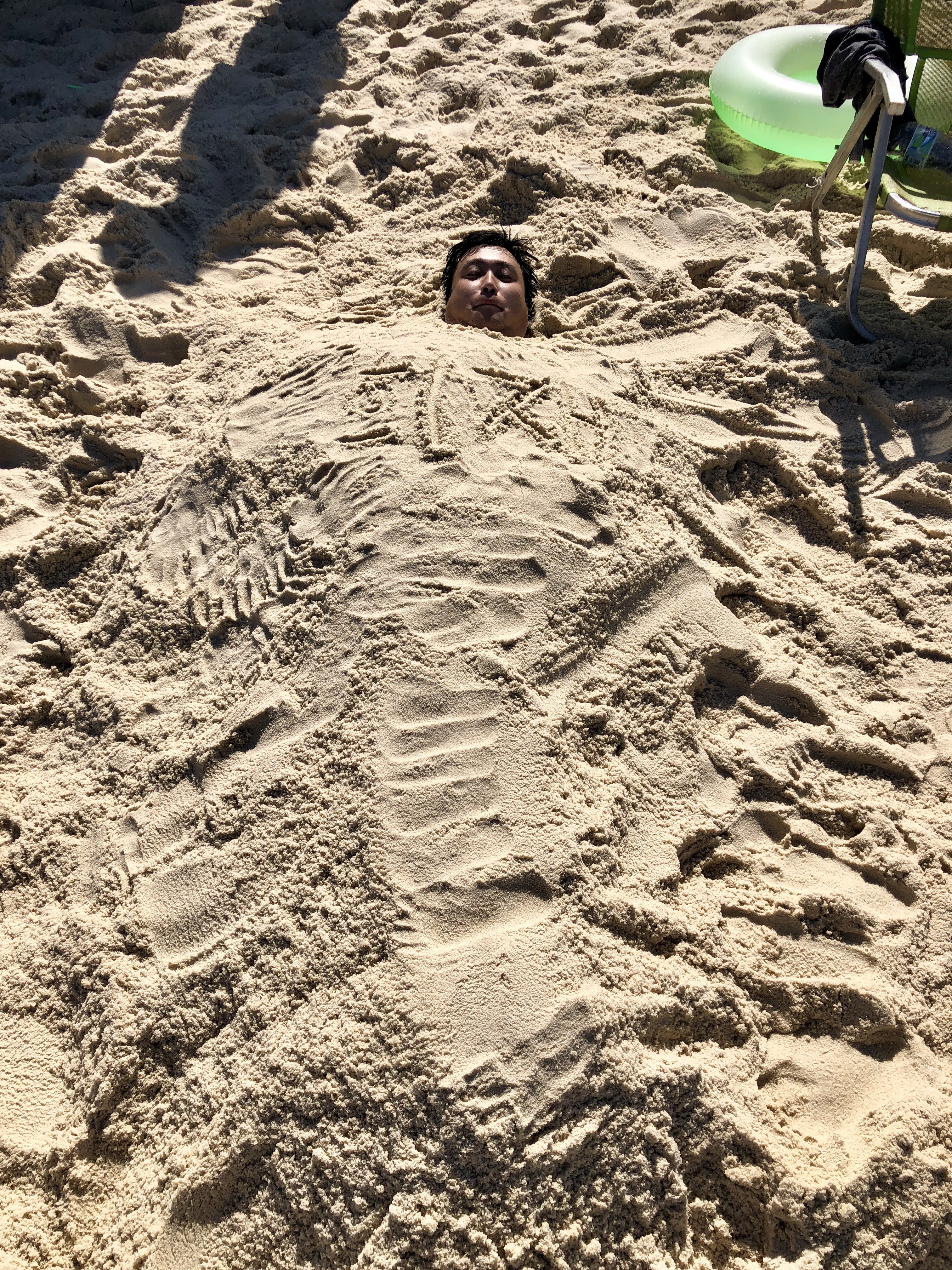 동생이 동해 해수욕장처럼 모래를 파서 얼굴만 남긴 채 묻어달라고 했는데, 그 때 놀았던 것이