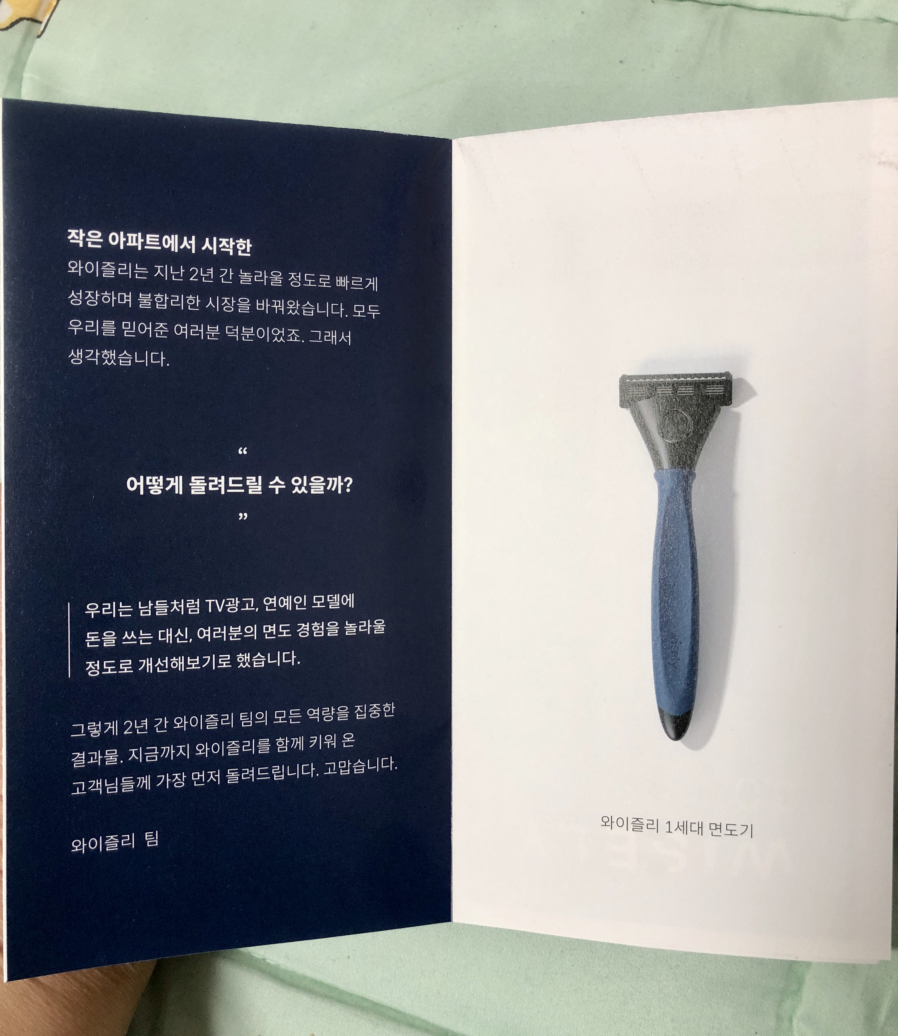 제가 직접 구독하며 사용하고 있는 와이즐리 면도기에 대해 포스팅 했습니다.