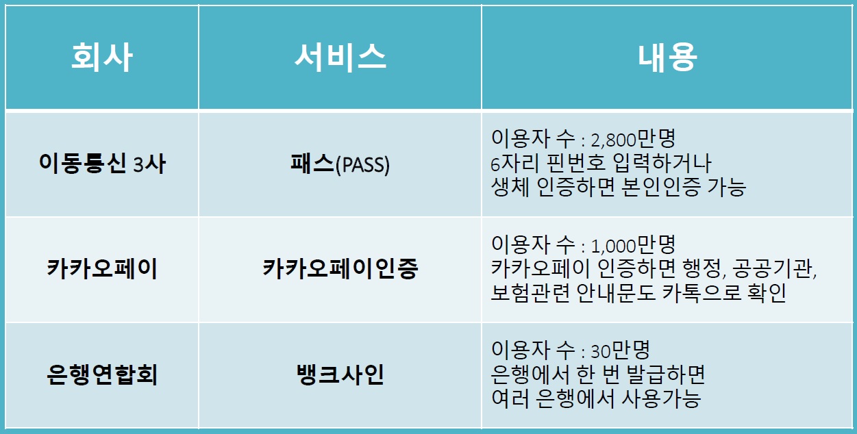 현재 민간인증서비스는 크게 아래 3가지로 볼 수 있다.