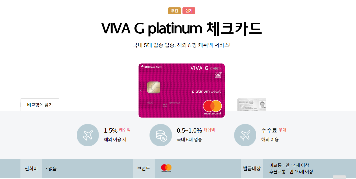 그래서 체크카드를 추천하는데요! 여행자들 사이에서 가장 인기있는 체크카드는