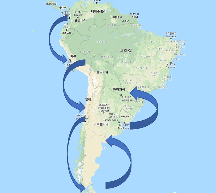 남미 대륙은 굉장히 넓기 때문에 본인의 일정이 여유있고 넉넉하다면 상관없지만,