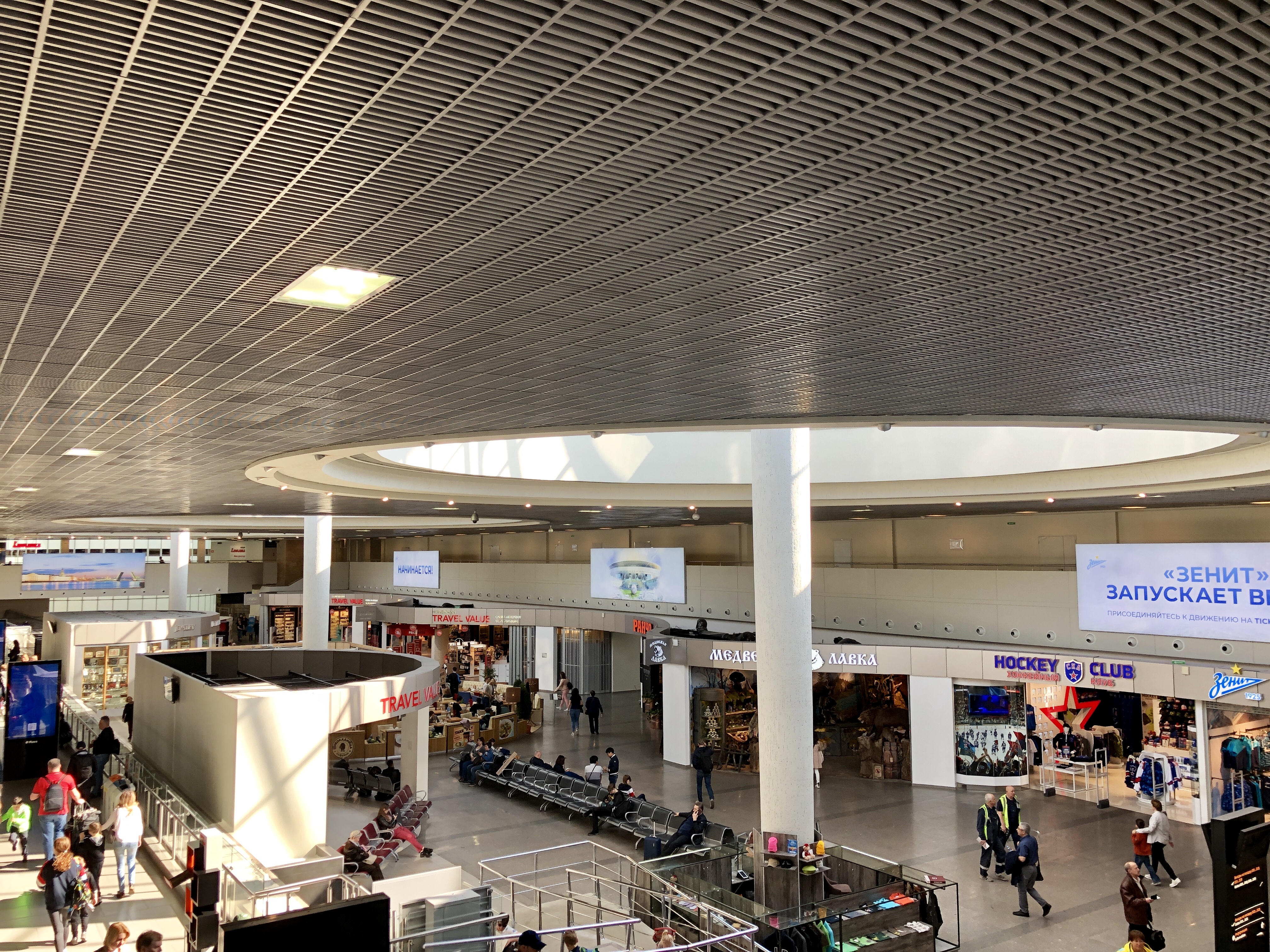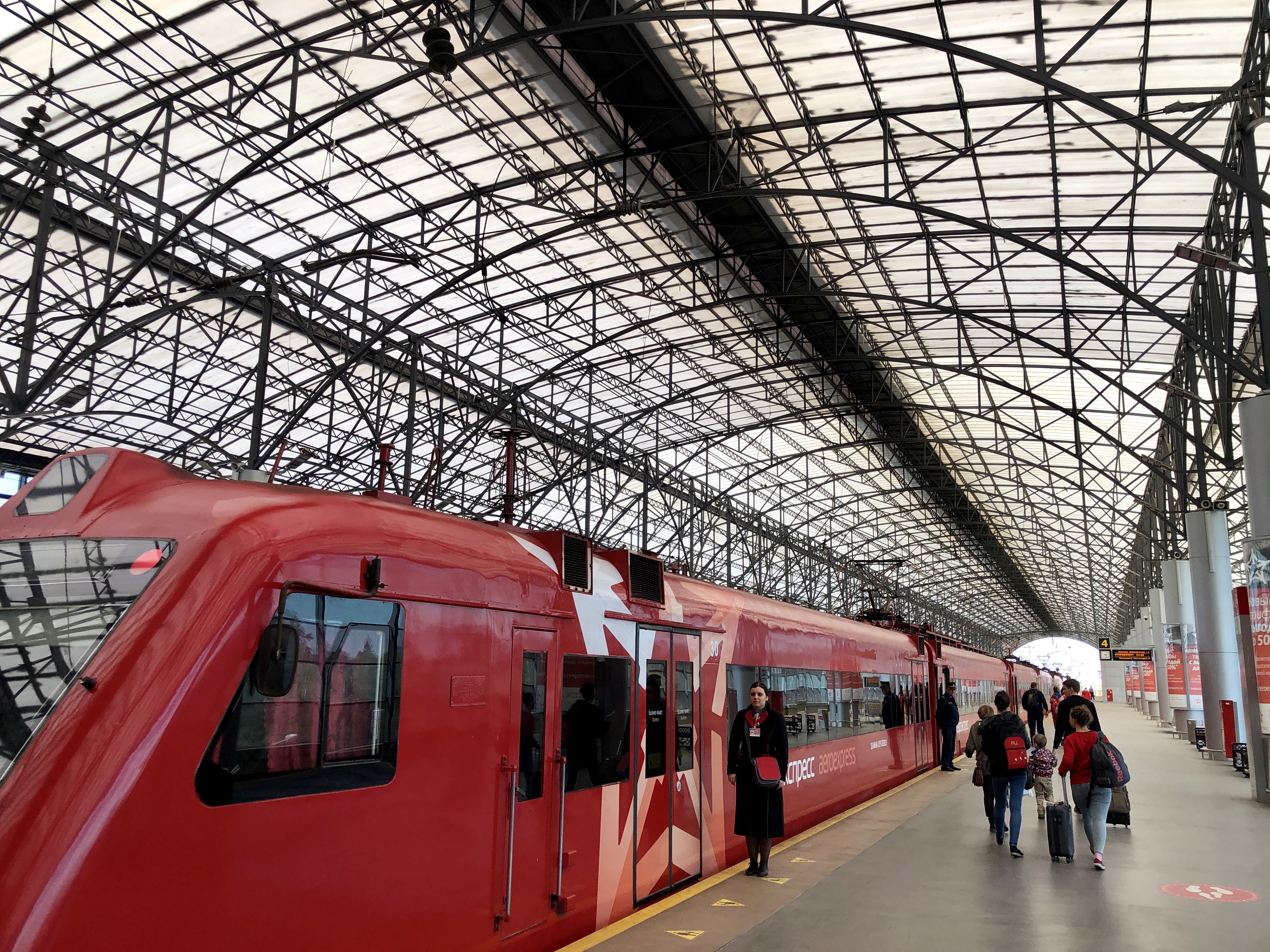 만족감을 느끼며 셰레메티예보 국제공항에서 시내까지 이동하는 철도를 타러 간다.