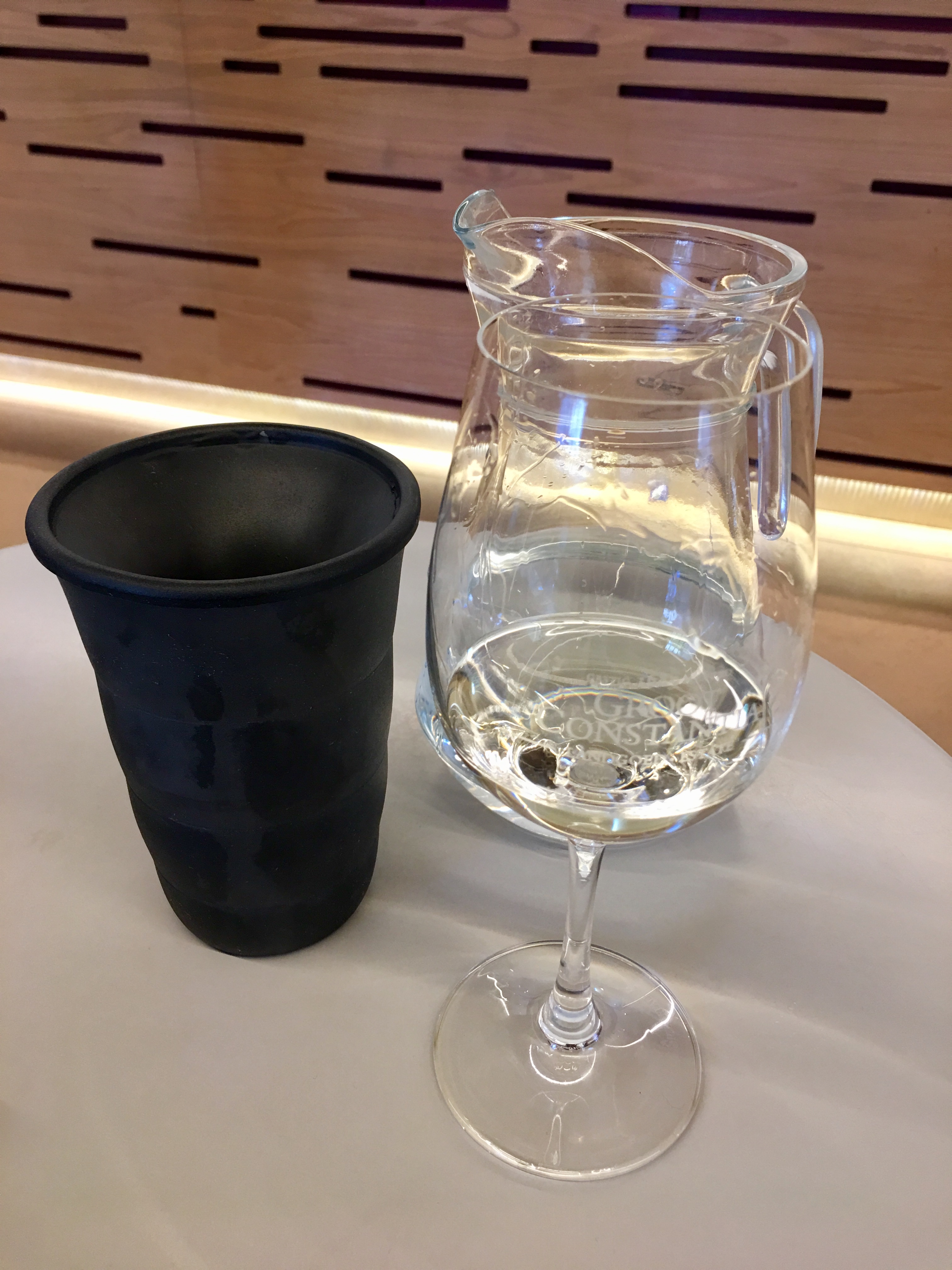 물병은 마신 와인잔을 씻어내기 위한 용도이자 입을 헹구는 용도이다.