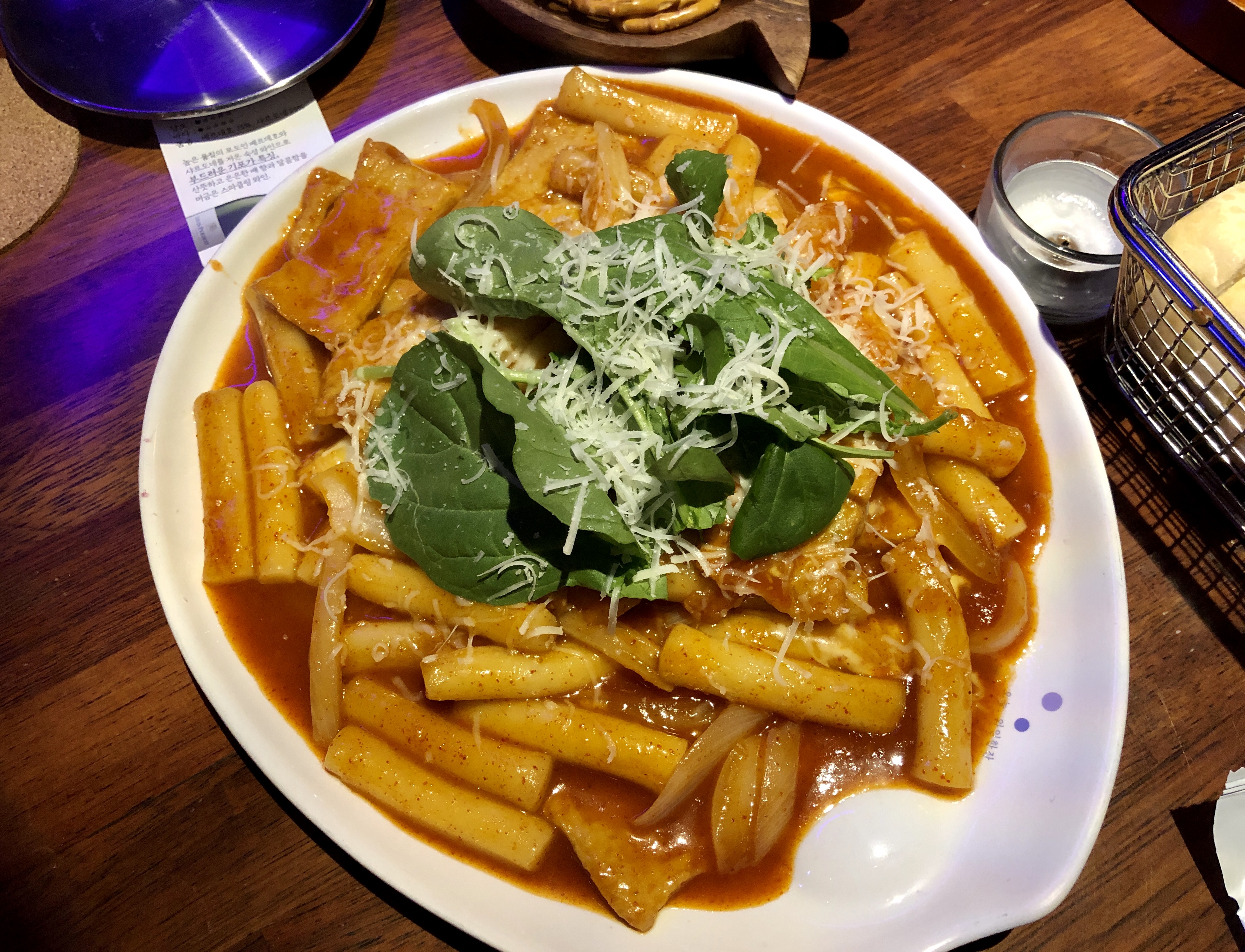 회와 매운탕을 실컷 먹고 왔음에도 감바스와 떡볶이를 다 먹어치웠다.