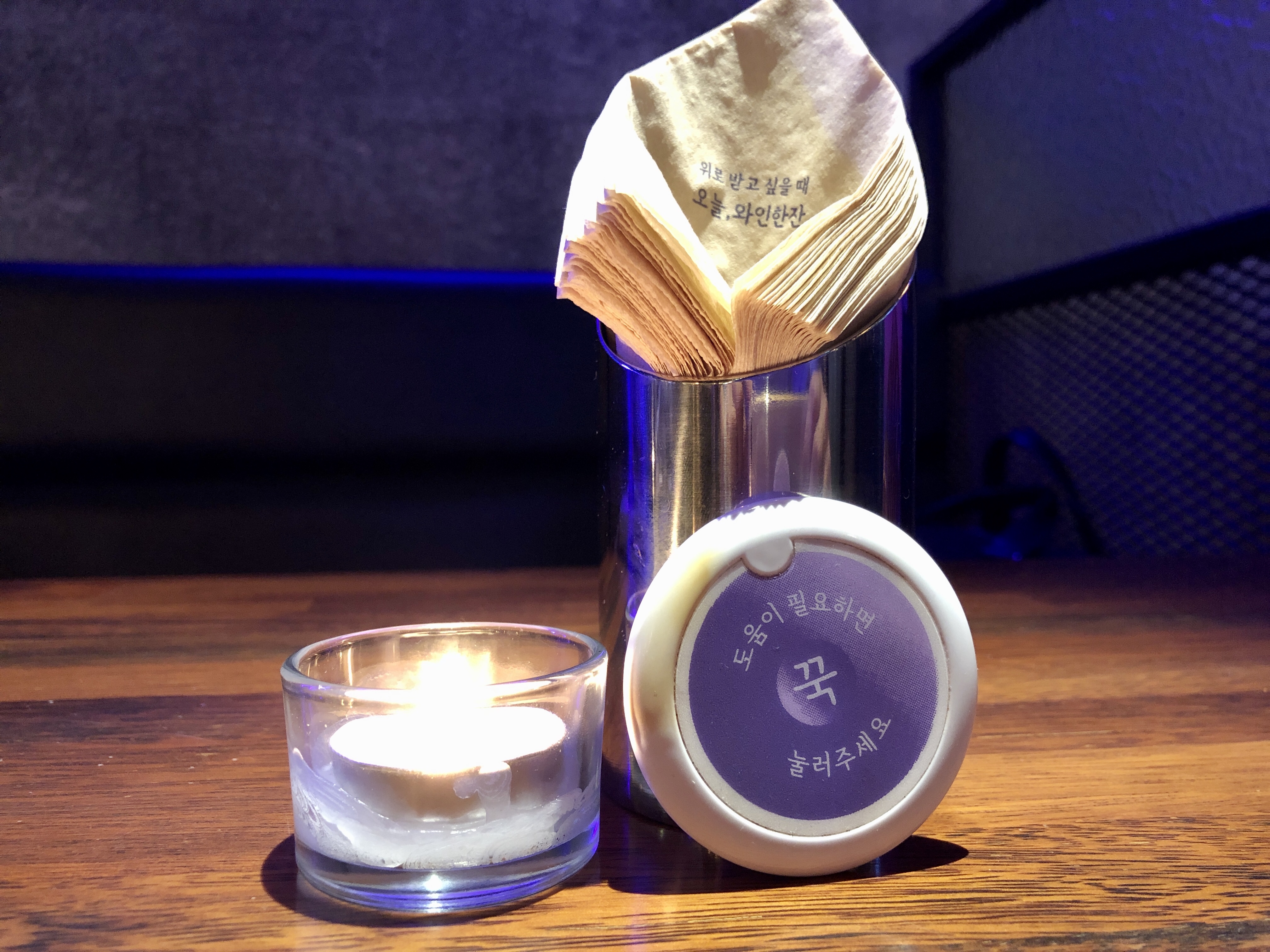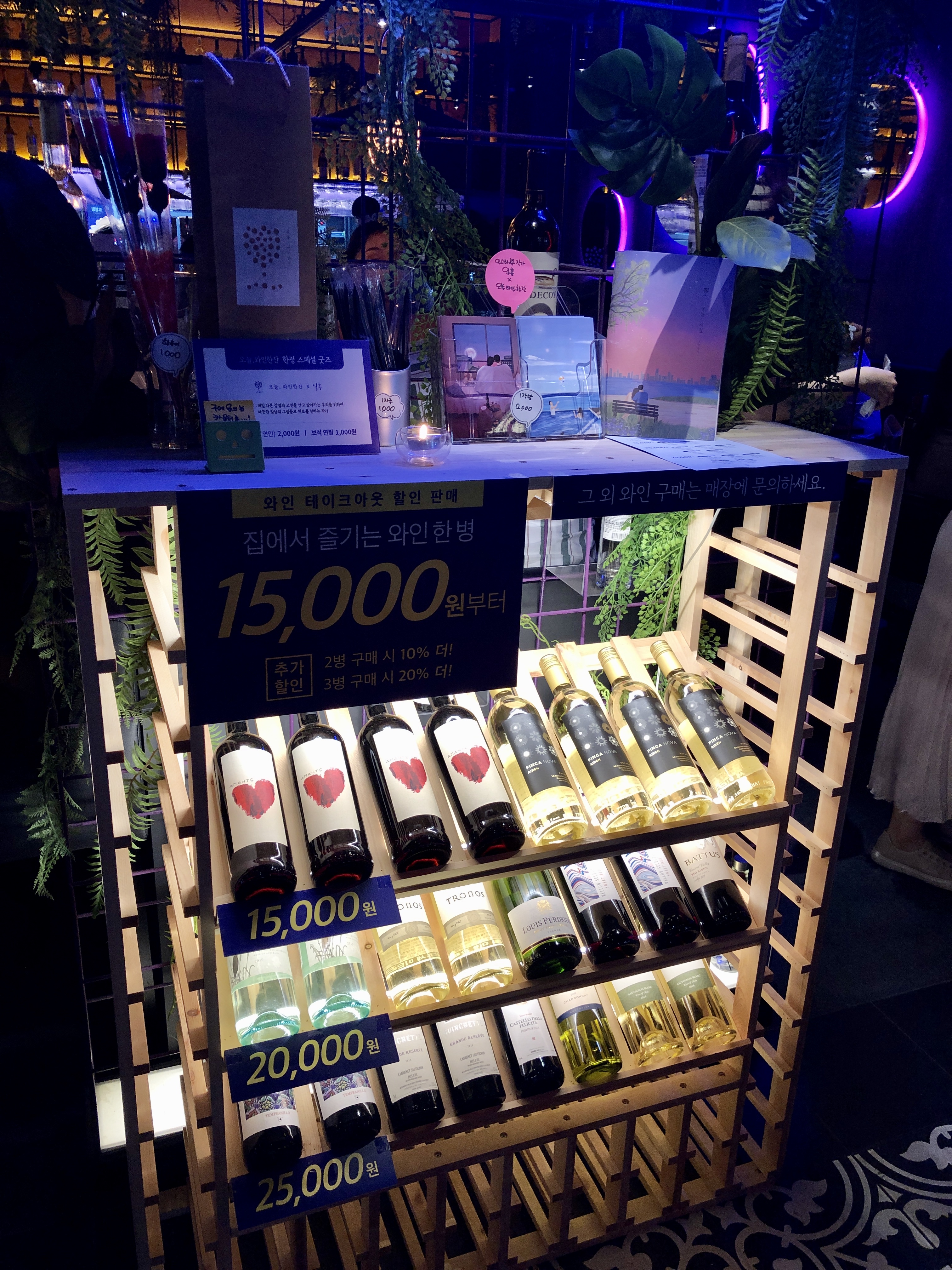 심지어 냅킨에도 위로받고 싶을 때 오늘 와인한잔 이라는 캐치프레이를 넣어놓았다.