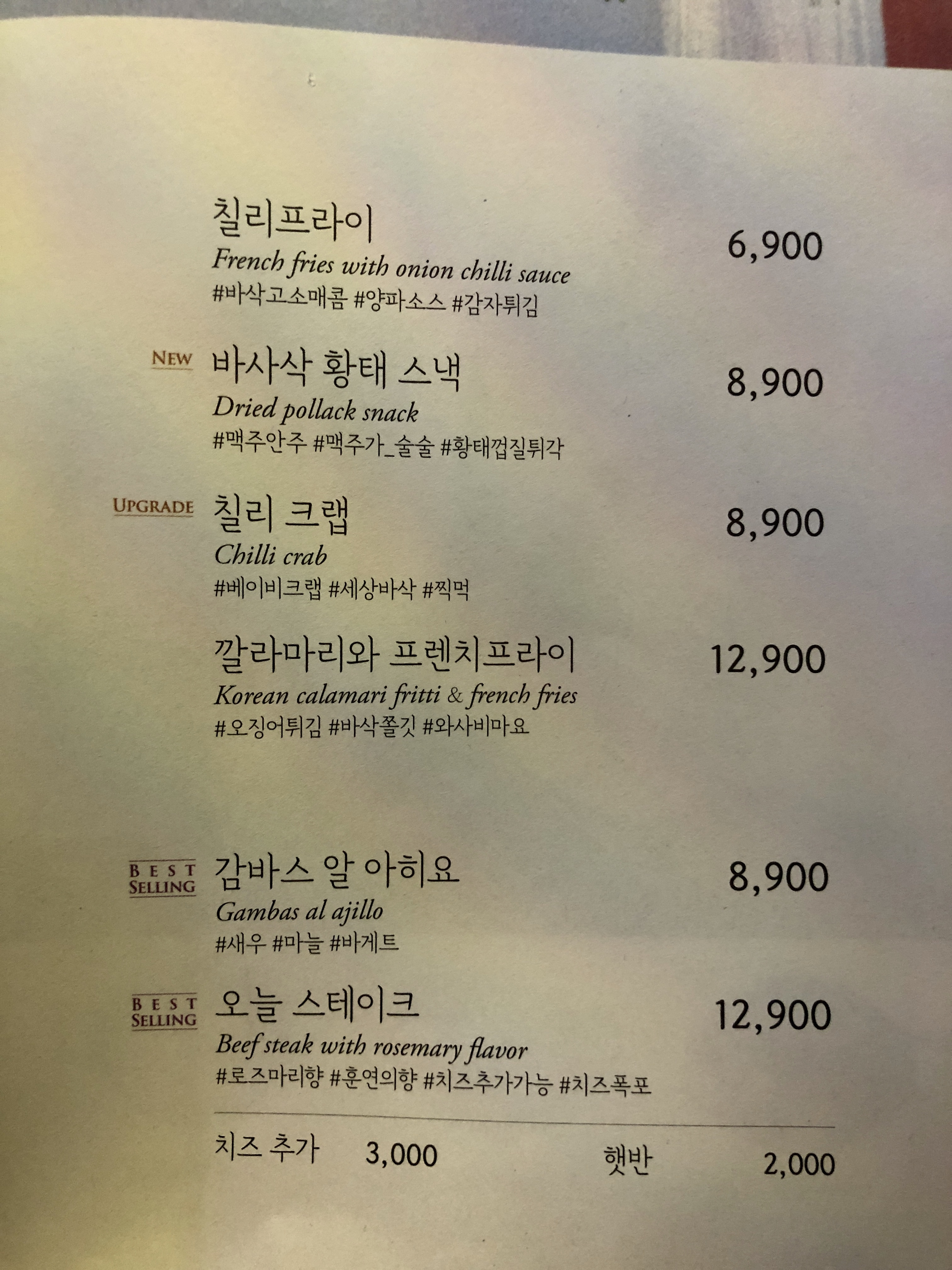 안주 메뉴도 생각보다 너무 많아서 행복한 고민을 하며 골랐다.